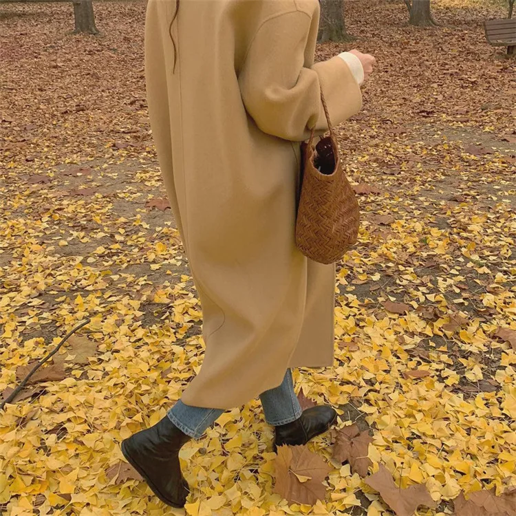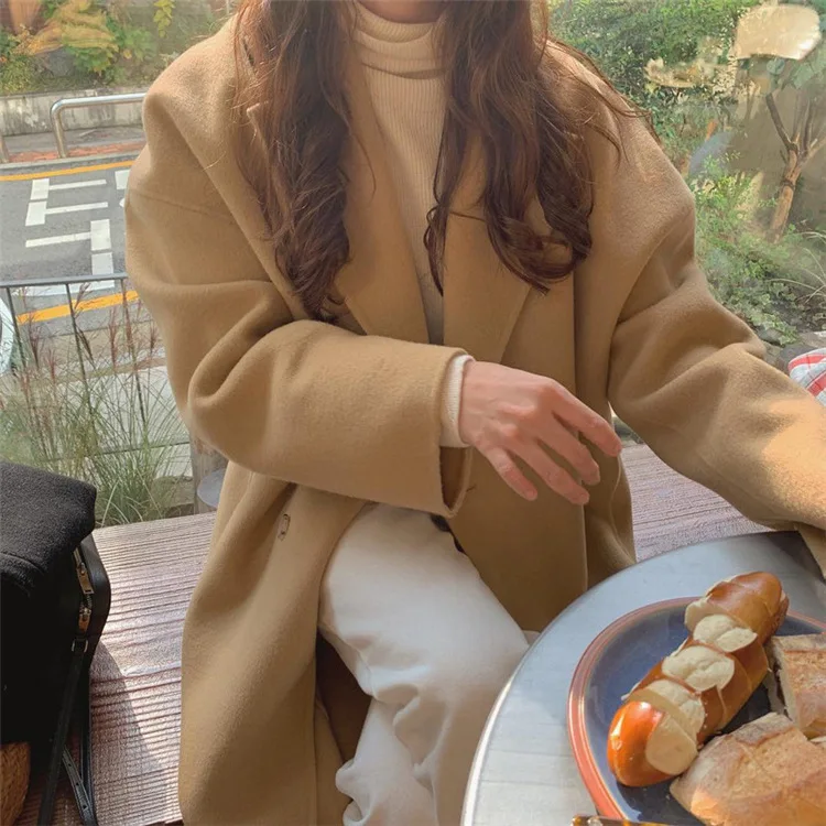 Винтажные длинные шерстяные пальто с рукавами-фонариками куртки Женская