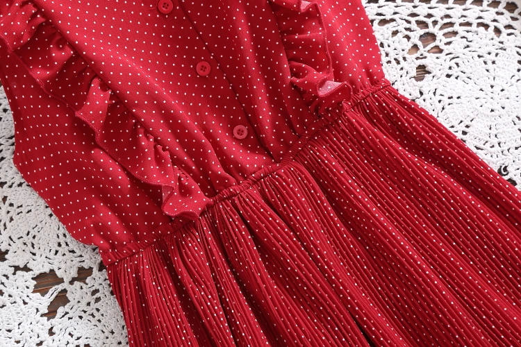 Летнее женское шикарное белое красное платье в горошек без рукавов с оборками элегантное милое шифоновое плиссированное платье Kawaii AE767