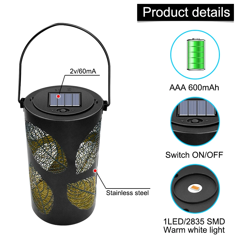LED Solar Lamp Garden Metal Hollow Sun Light Warm White Waterproof Solar Latern Decora For Outdoor Villa Lawn Walkway