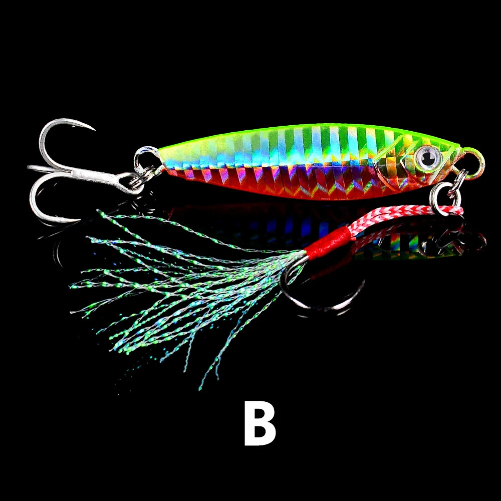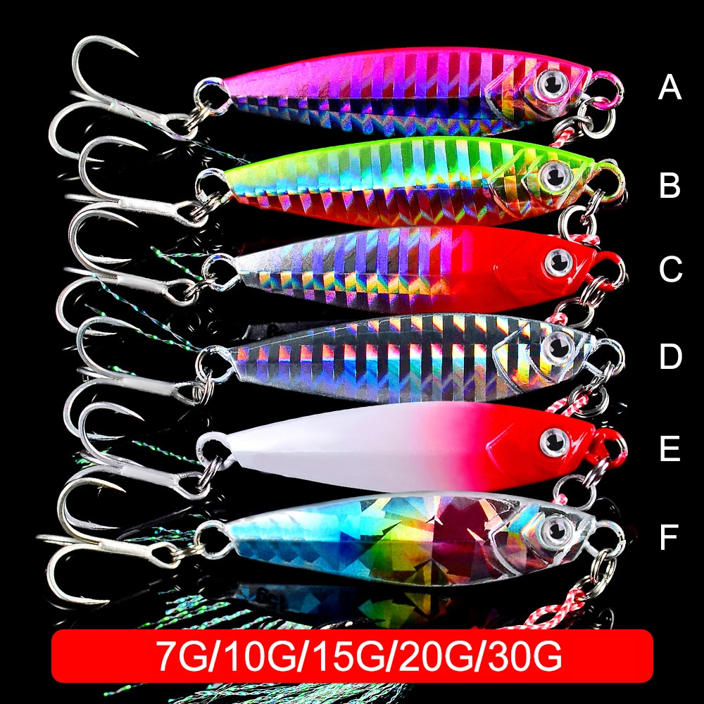 Quantity: 6pcs Weight: 7g, 10g, 15g, 20g, 30g Material: lead, stainless steel, high carbon steel Feature: 1. Stainless steel iron plate, coated with lead layer, anti-seawater corrosion 2. Hardness of the iron plate is high and the density is high, fast sinking in the water 3. 3D eyes more attractive to fish. Note: The measurement may have some errors, please don't mind it. thanks