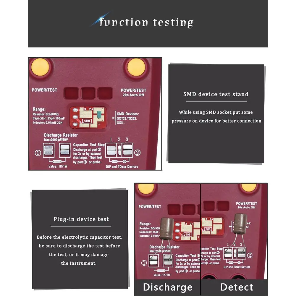 Перед тестированием конденсатора убедитесь в его разрядке, в противном случае это может повредить внутреннюю цепь.