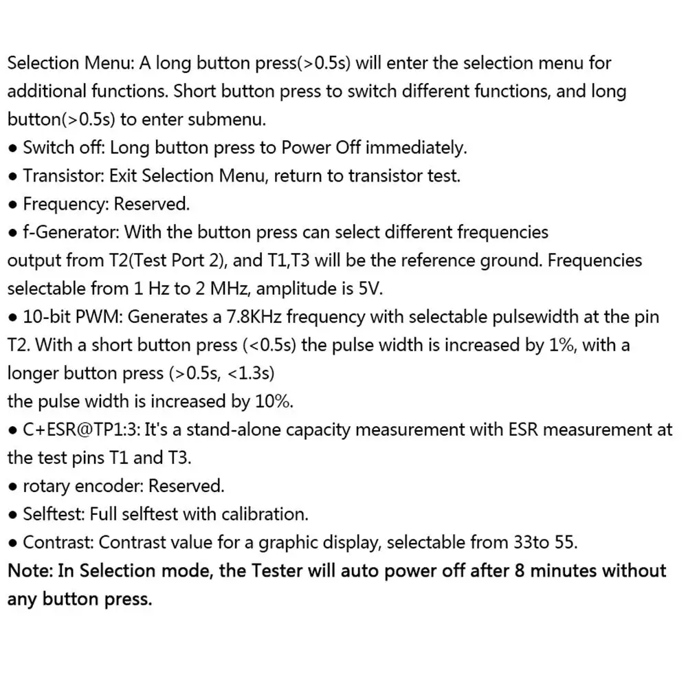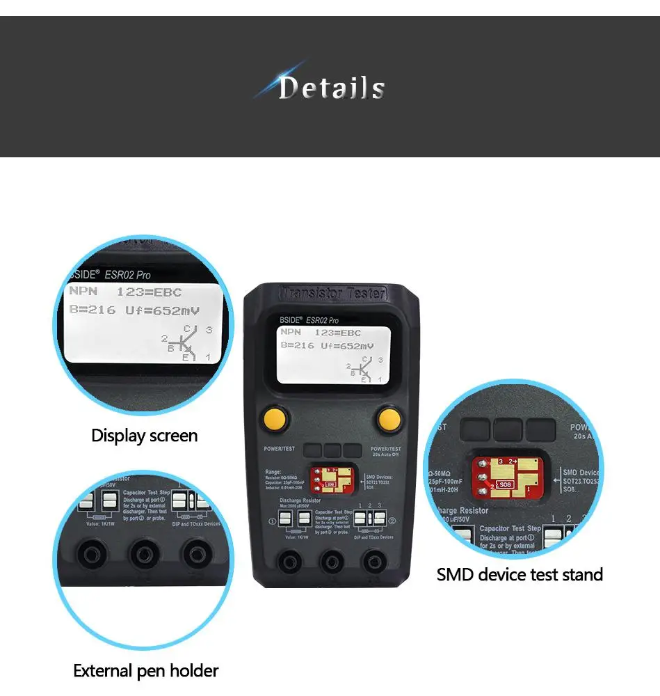 Нажмите «мощность/Тест» для включения и запуска теста, несколько измерений могут быть повторены с помощью этой кнопки, Автоматическое отключение питания через 20 секунд после измерения.