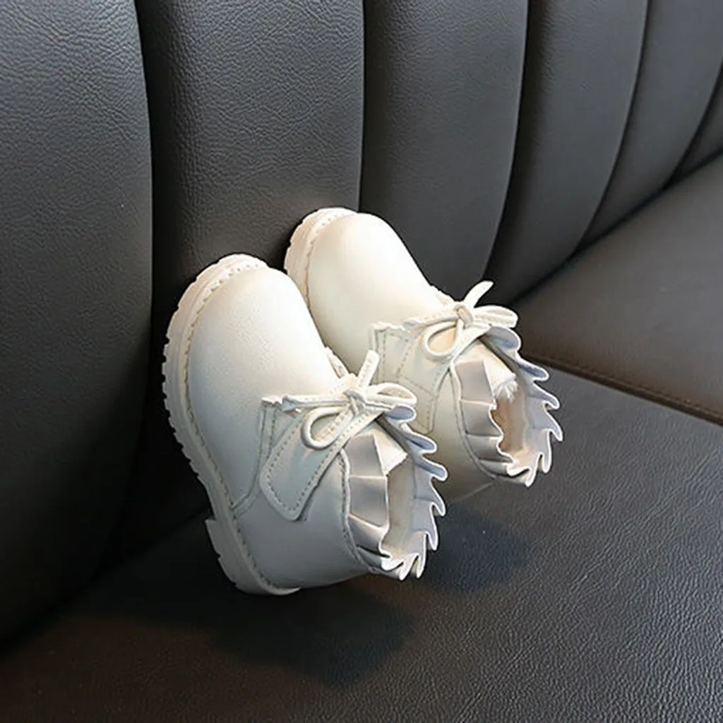 Зима Однотонные теплые короткие ботинки с бантом для маленьких девочек; повседневная обувь