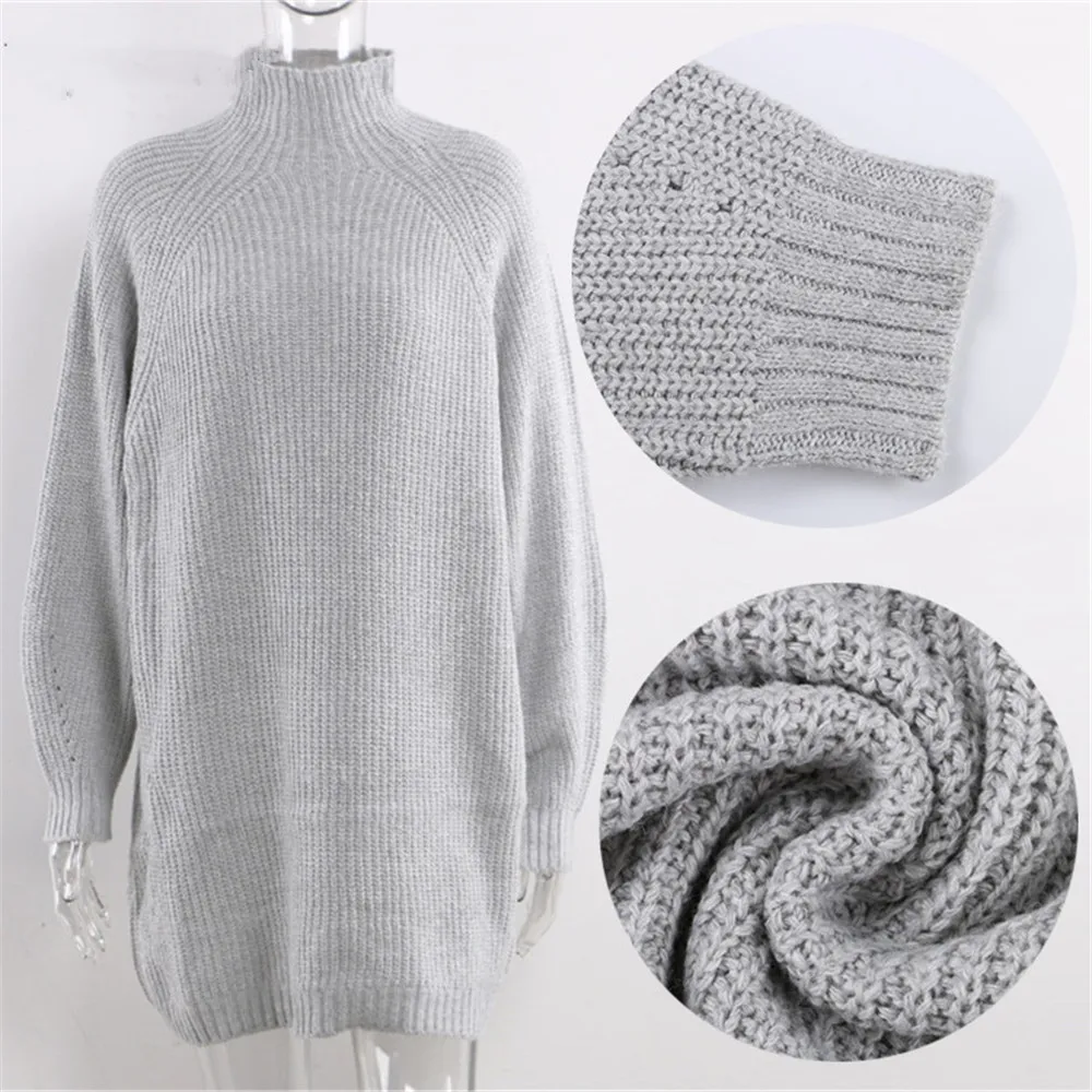 Женское платье осень зима длинный рукав розовый серый водолазка вязаный свитер платье повседневное Короткое мини платье размера плюс vestidos 35