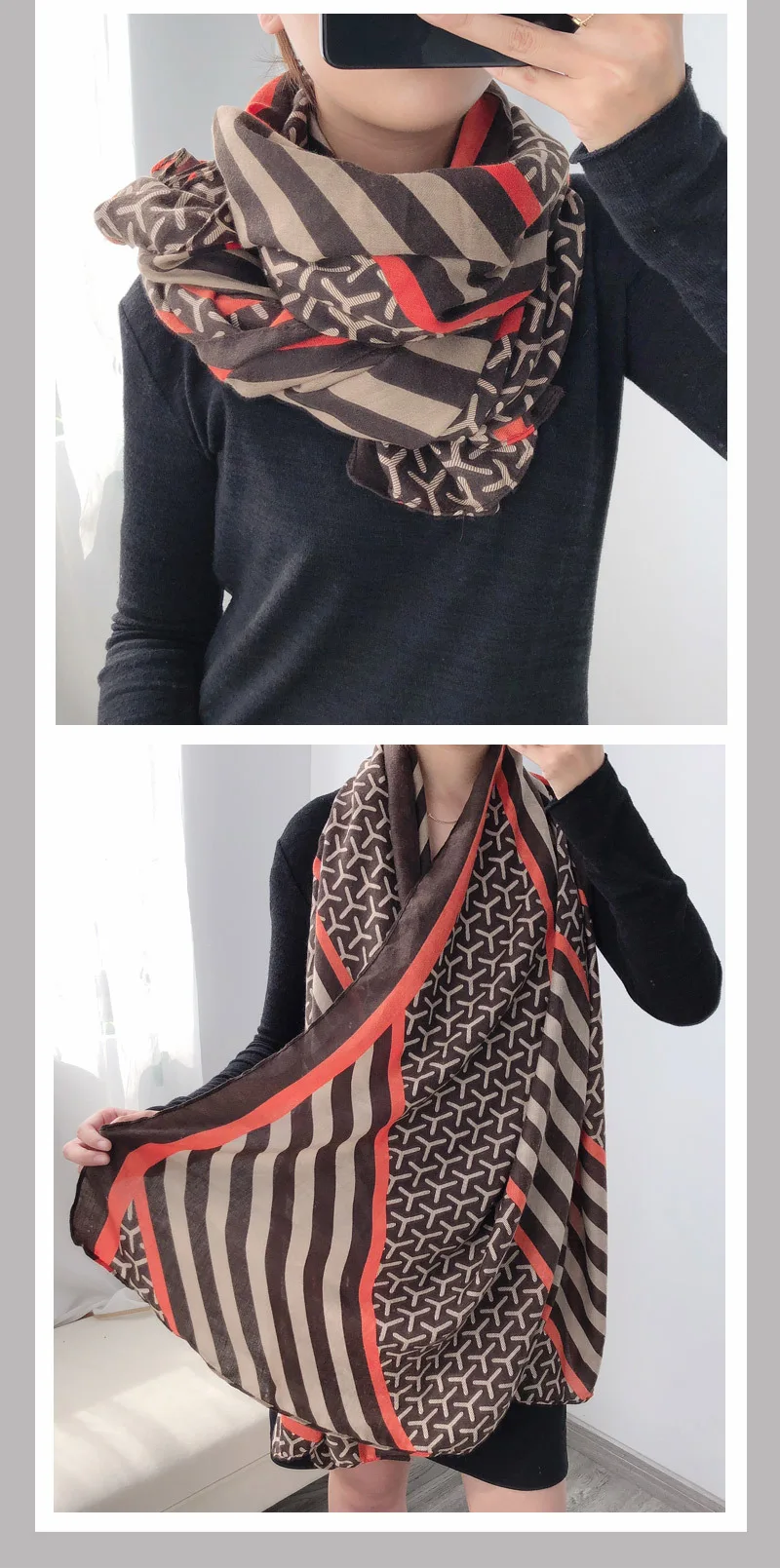 Роскошные брендовые шарфы для женщин 2019 полосатая хлопковая линия...US $9,66