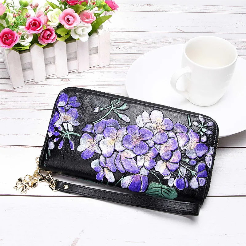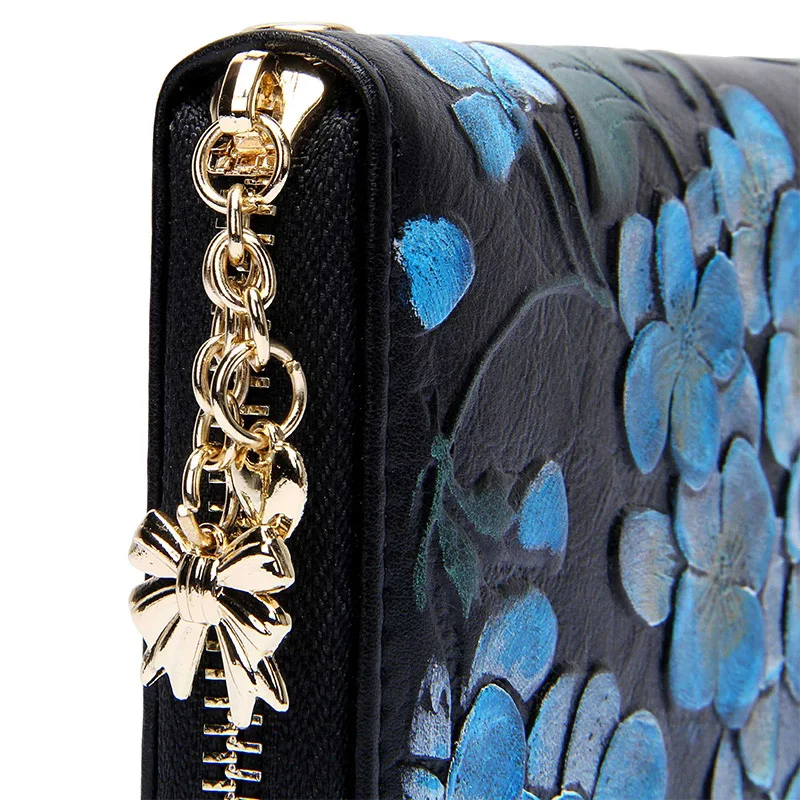 Большой Вместительный женский цветочный кошелек с блокировкой RFID, органайзер для кредитных карт, длинный клатч на молнии, кошелек с ремешком на запястье, Повседневная сумка на мобильный телефон