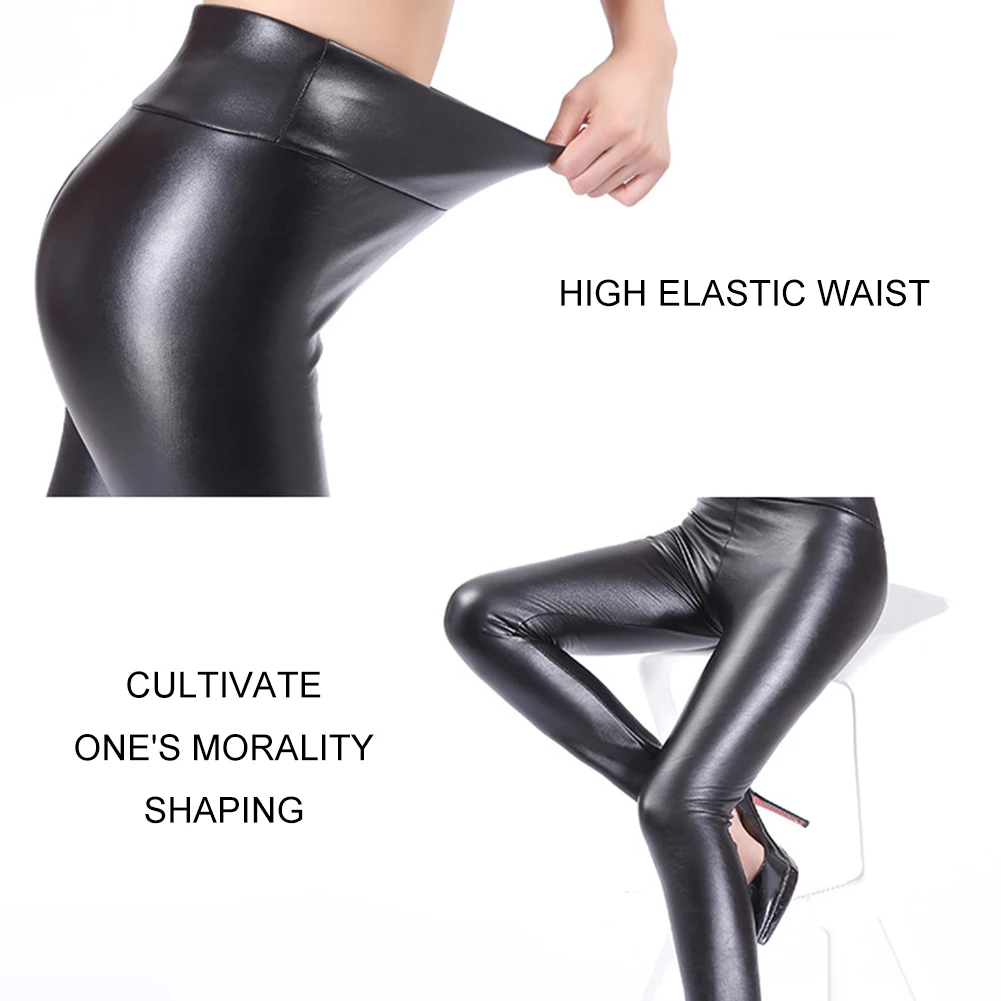 Шикарные женские эластичные облегающие леггинсы из искусственной кожи с высокой талией размера плюс