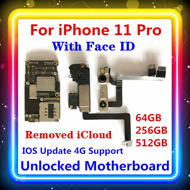Разблокирована для iPhone 11 Pro Материнская плата чистая iCloud с лицом ID 64 Гб/256 ГБ/512 ГБ для iPhone 11 pro плата поддержка 4G sim-карты