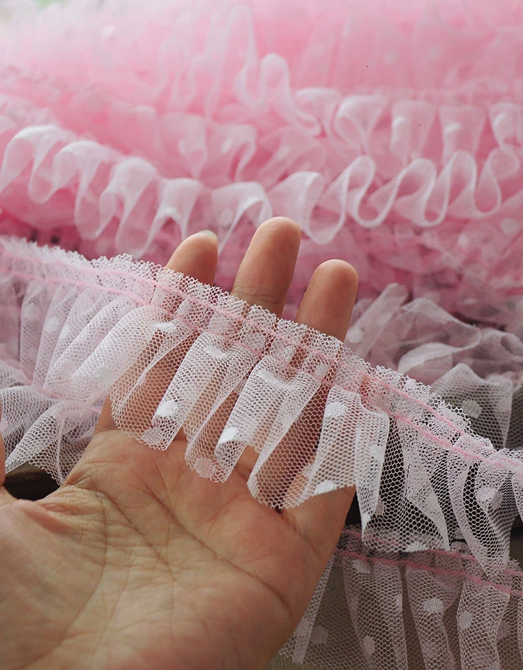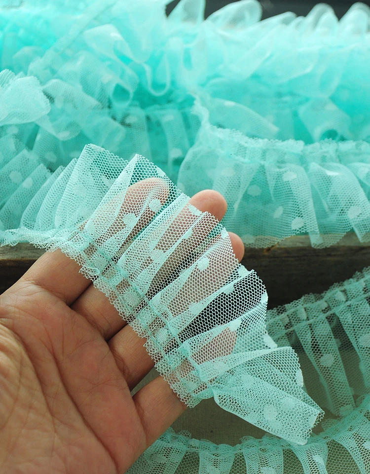 Роскошный Тюль шириной 5 см, 3d плиссированная сетчатая ткань в горошек с оборками и бахромой, кружевная окантовка, вышитая лента, платье, швейные принадлежности