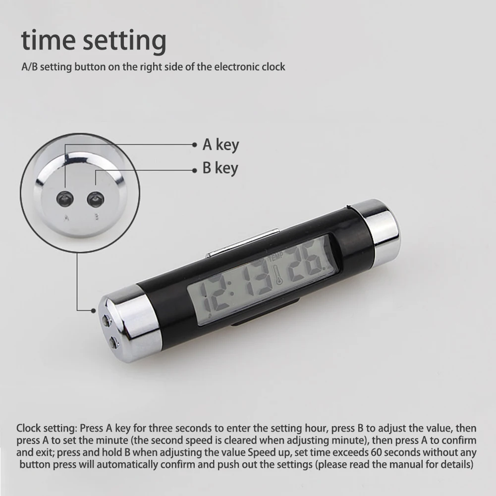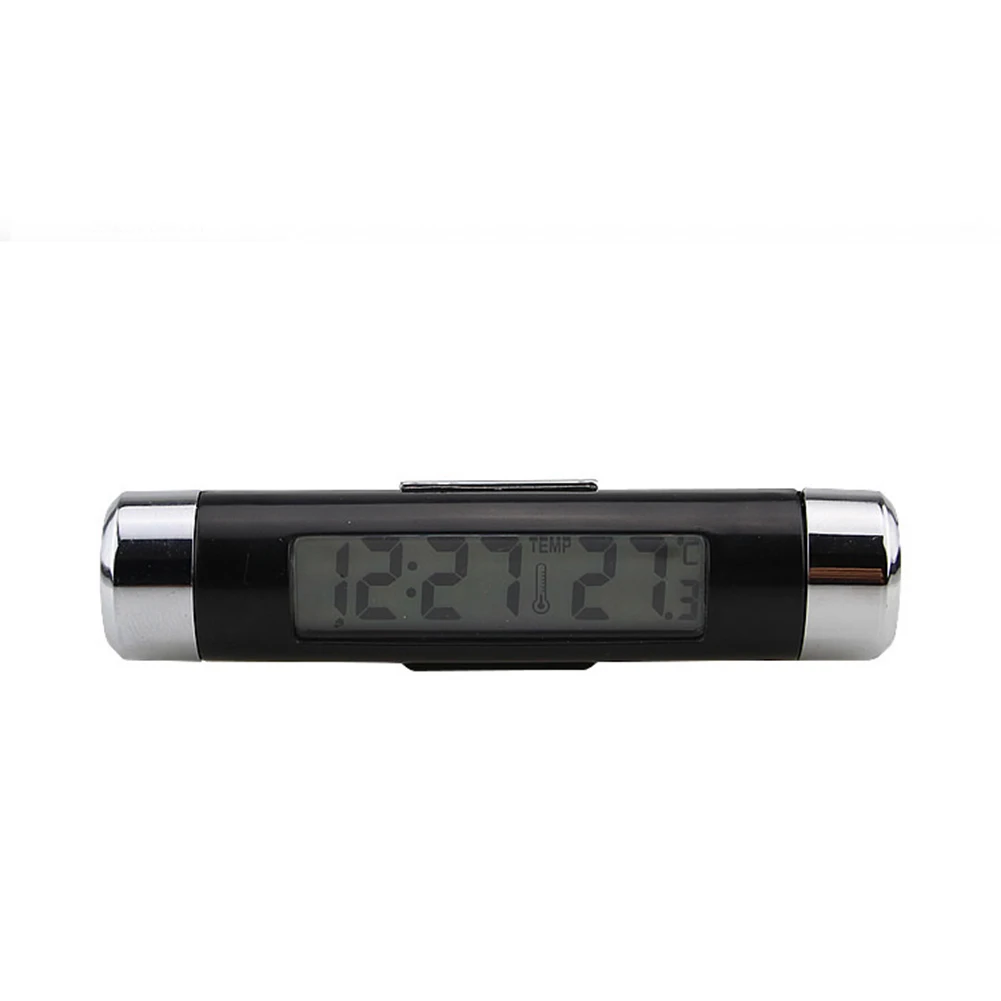 Компактные, элегантные и инновационные автомобильные часы и термометры. Часы, функция отображения температуры с синей подсветкой, оснащена двухсторонними зажимами и наклейками, применимыми к выходу воздуха, центральной консоли, просты в установке.