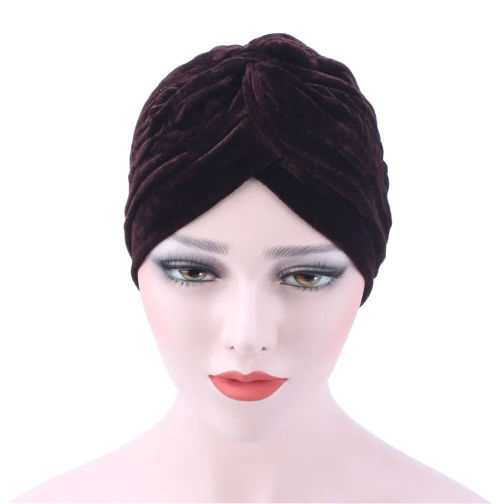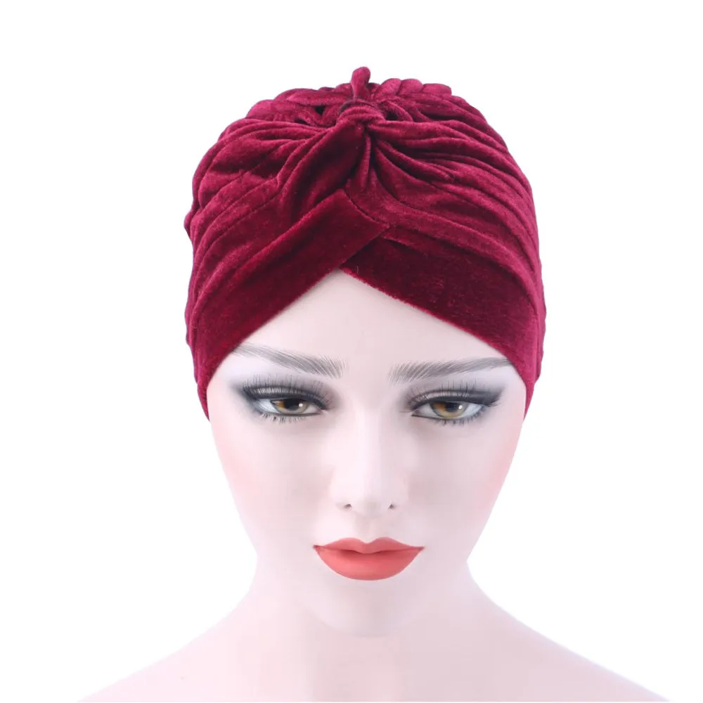 Женский бархатный мусульманский гофрированный Рак химиотерапия шляпа бини шарф Тюрбан головной убор Параметры:
