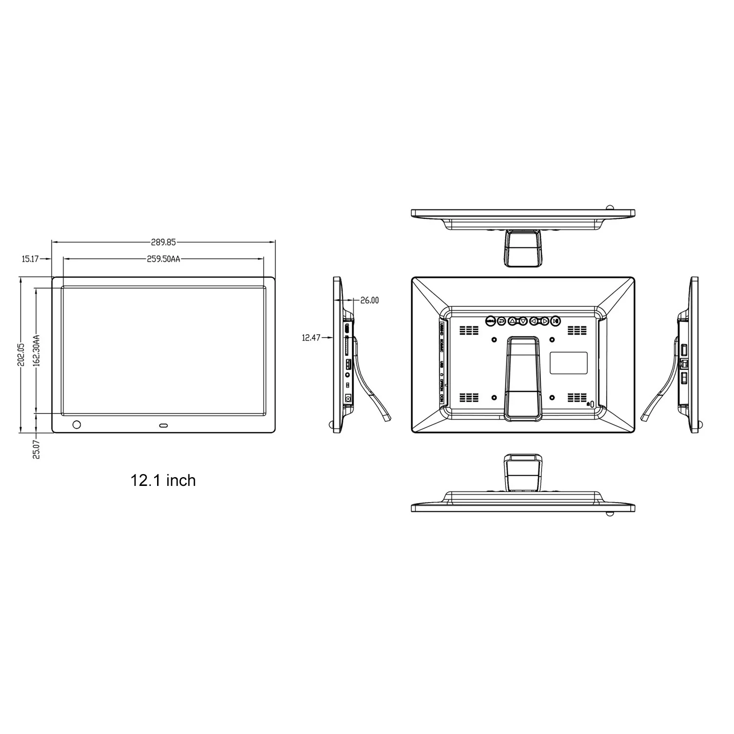 12-дюймовый большой экран с высоким разрешением, 16:9 соотношение сторон, 1280*800 высокое разрешение, 250cd/brightness яркость.