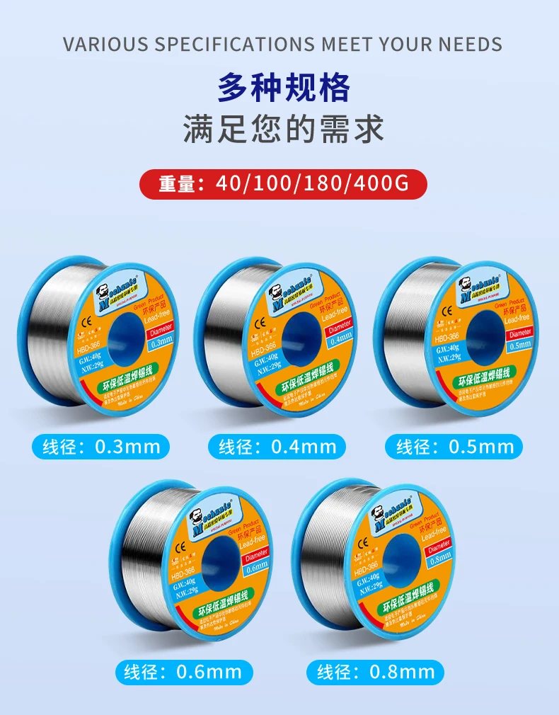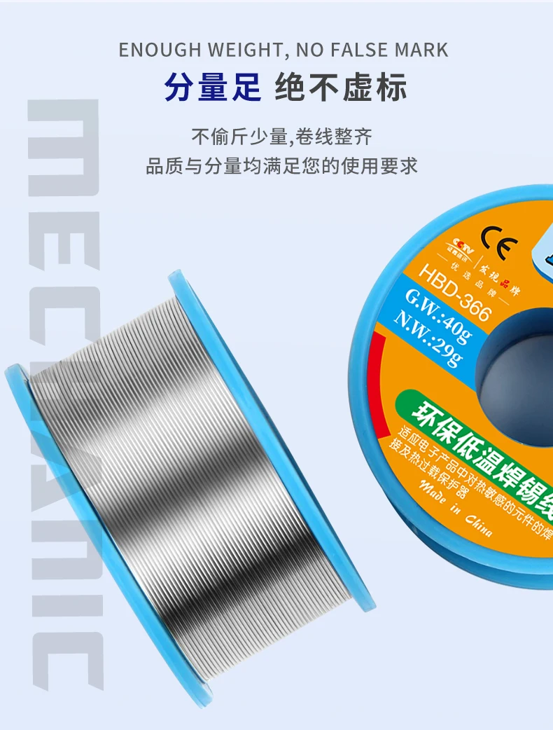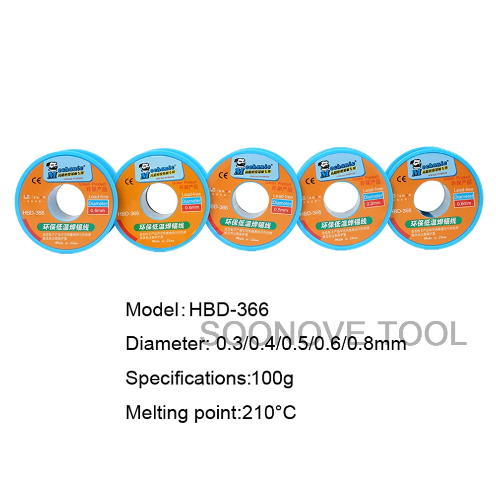 MECHANIC 100g Sn42/Bi58 0.3/0.4/0.5/0.6/0.8mm Low Temperature Solder Wire Lead Free Soldering Tin Line Soldering Wire Roll
