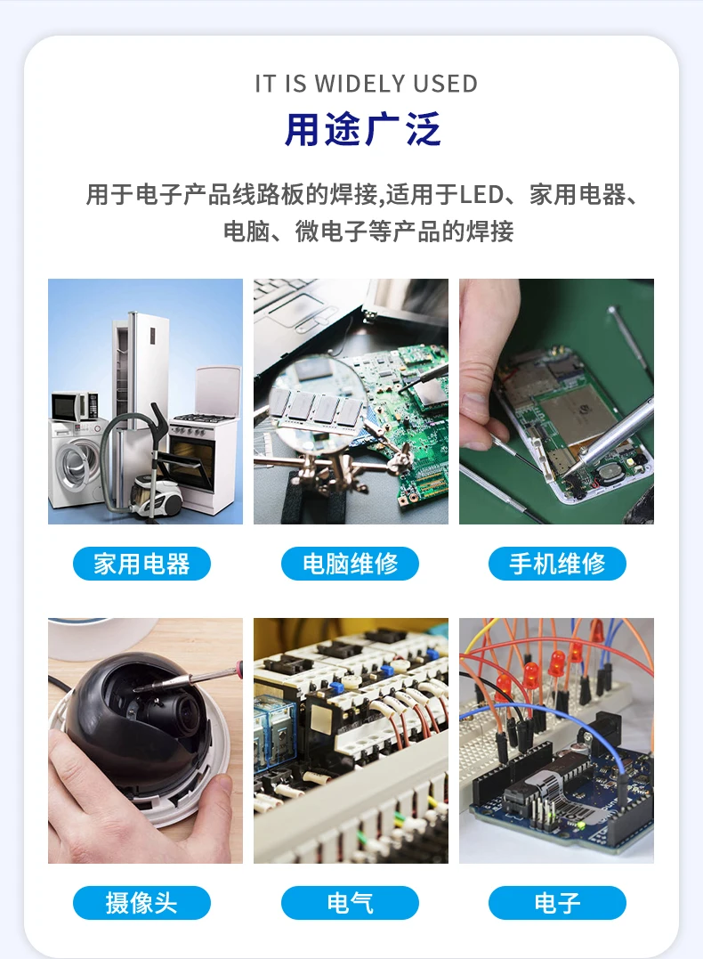 It is widely used in electrical and electronics, solder parts like circuit board, electronics devices and others