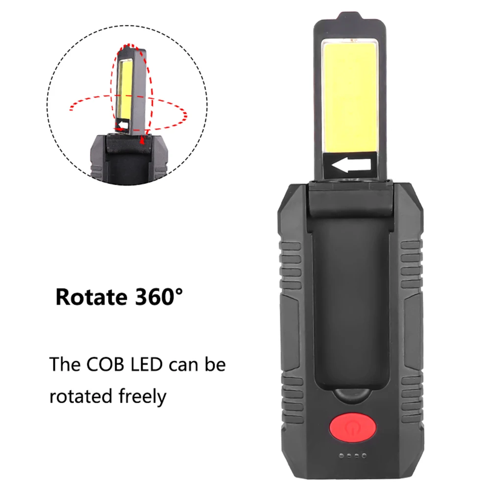 Портативный COB светодиодный рабочий свет, USB перезаряжаемая Рабочая лампа, встроенный аккумулятор, фонарик, магнитный фонарь с крючком, красный рабочий свет
