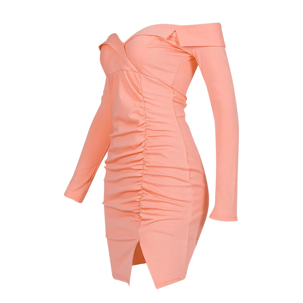 Женское осенне-зимнее модное однотонное платье с одним вырезом и ягодицами
