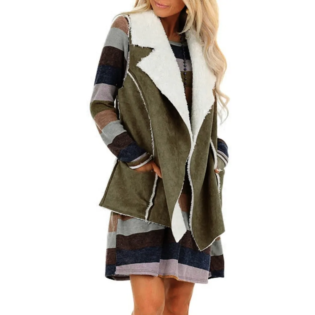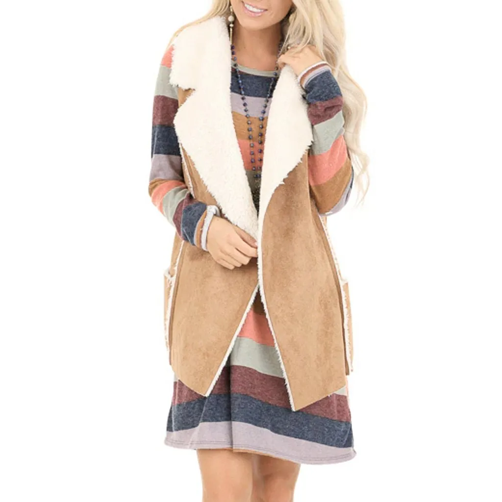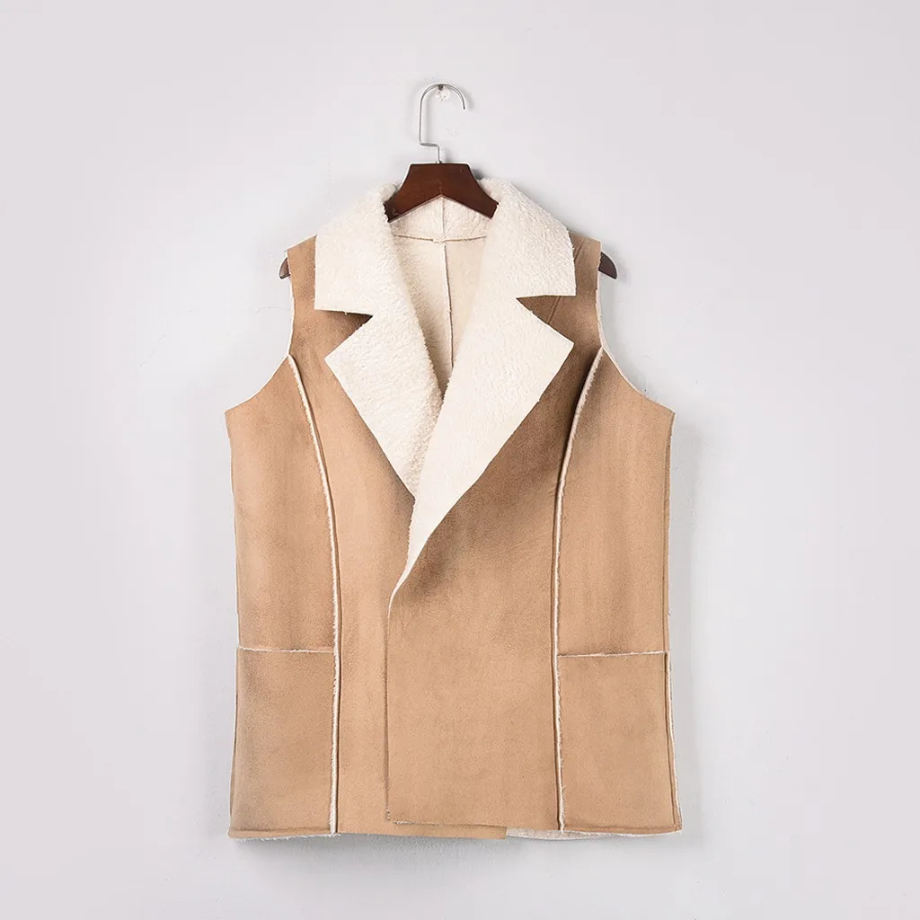 Женская Повседневная Удобная куртка без рукавов из искусственной замши с карманами
