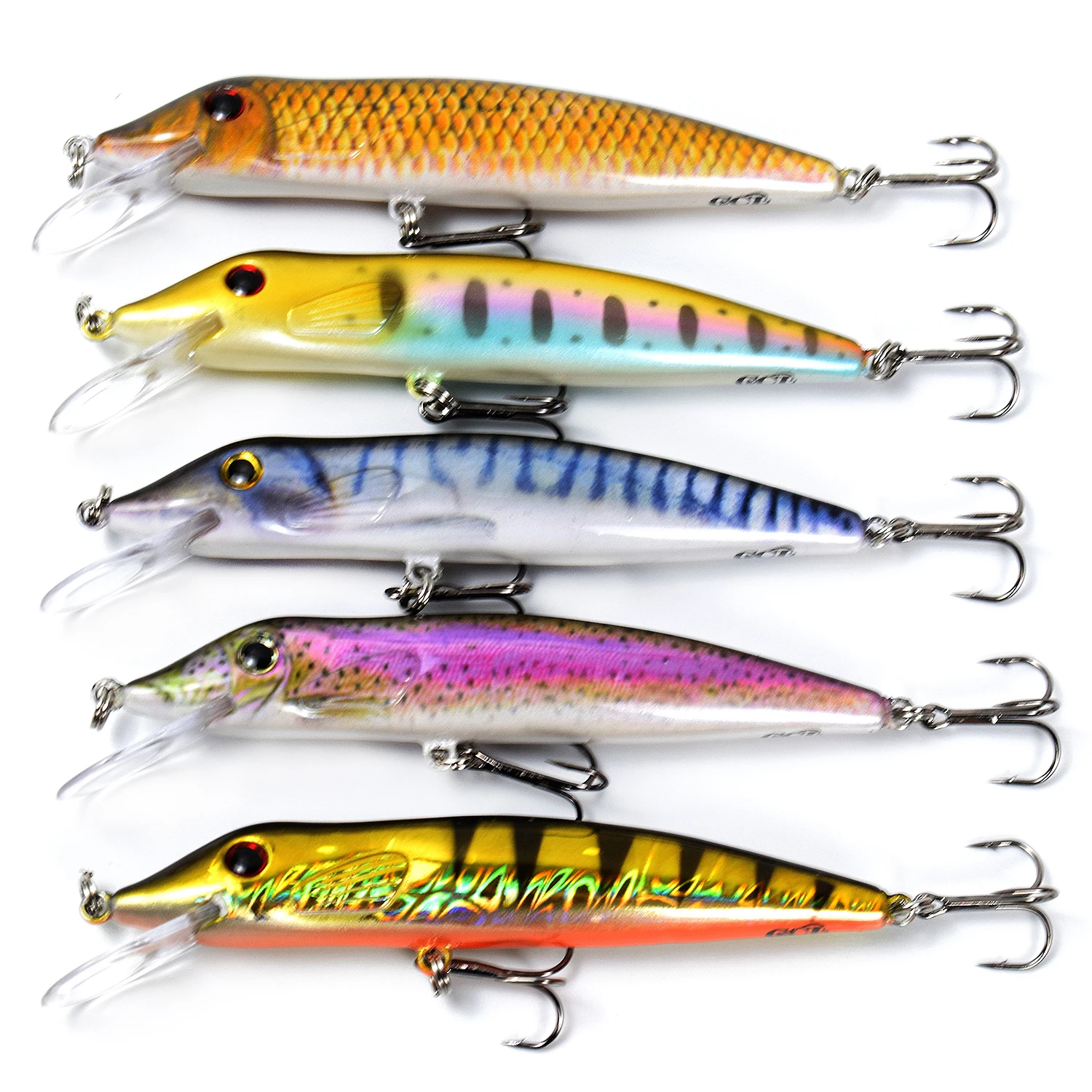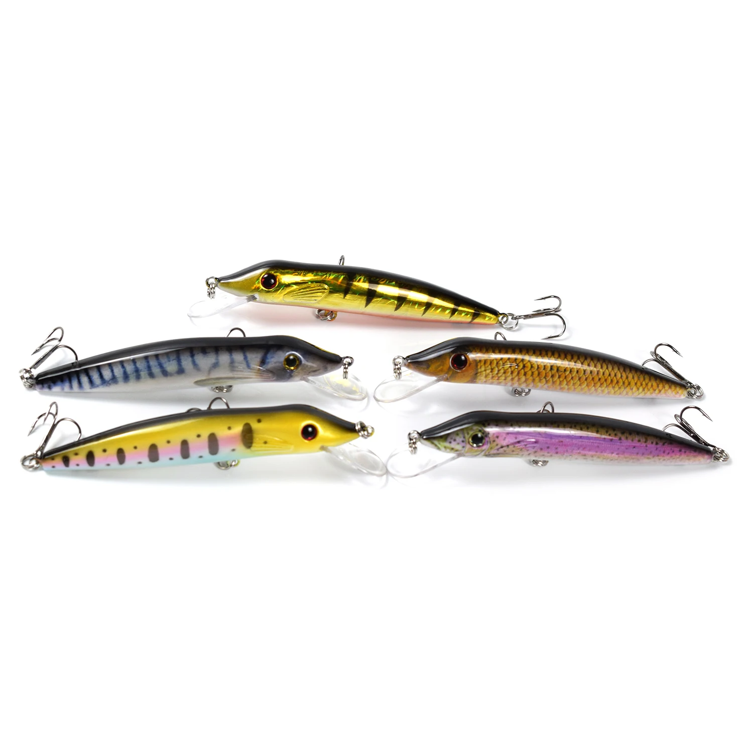 Каждая приманка с двумя острыми тройными крючками.