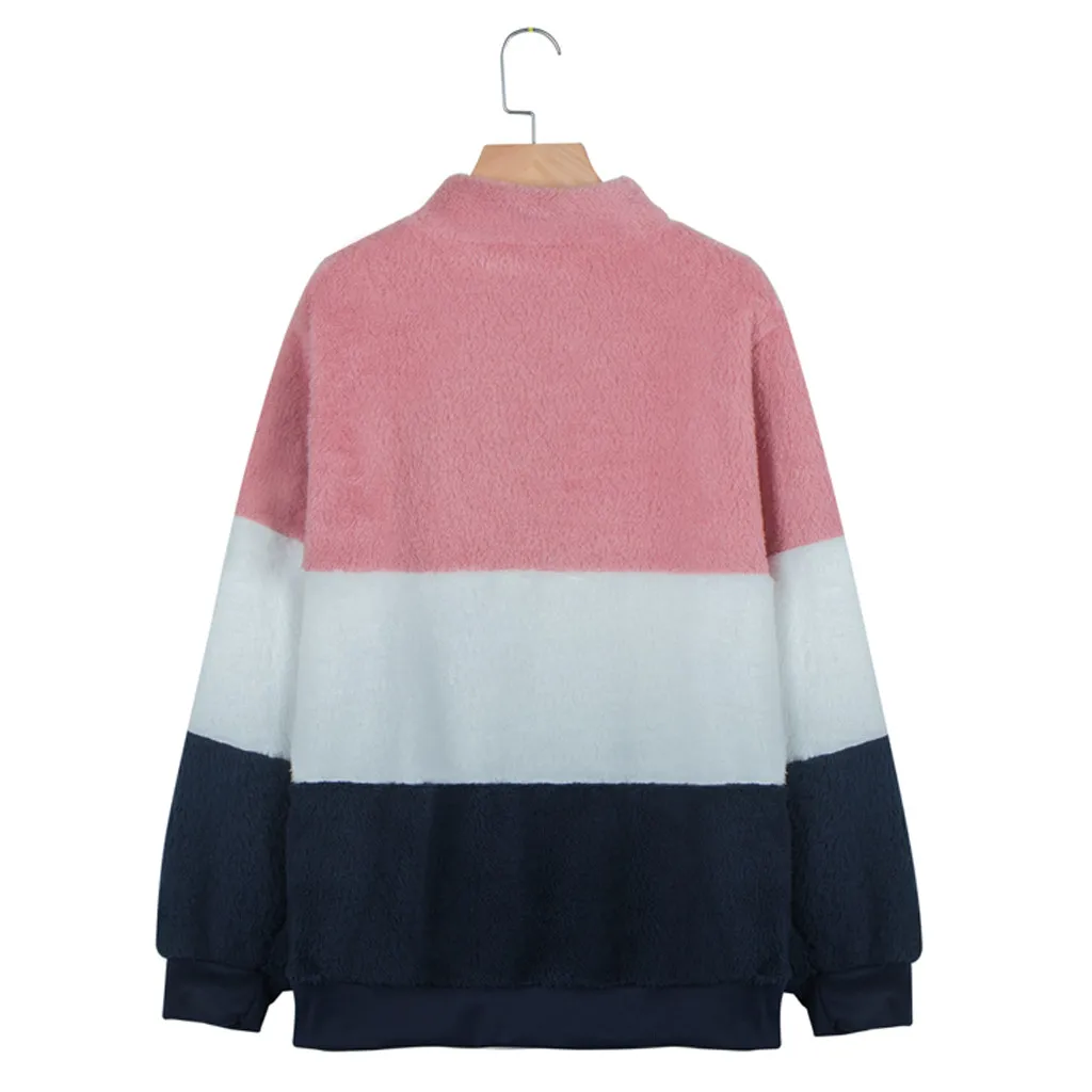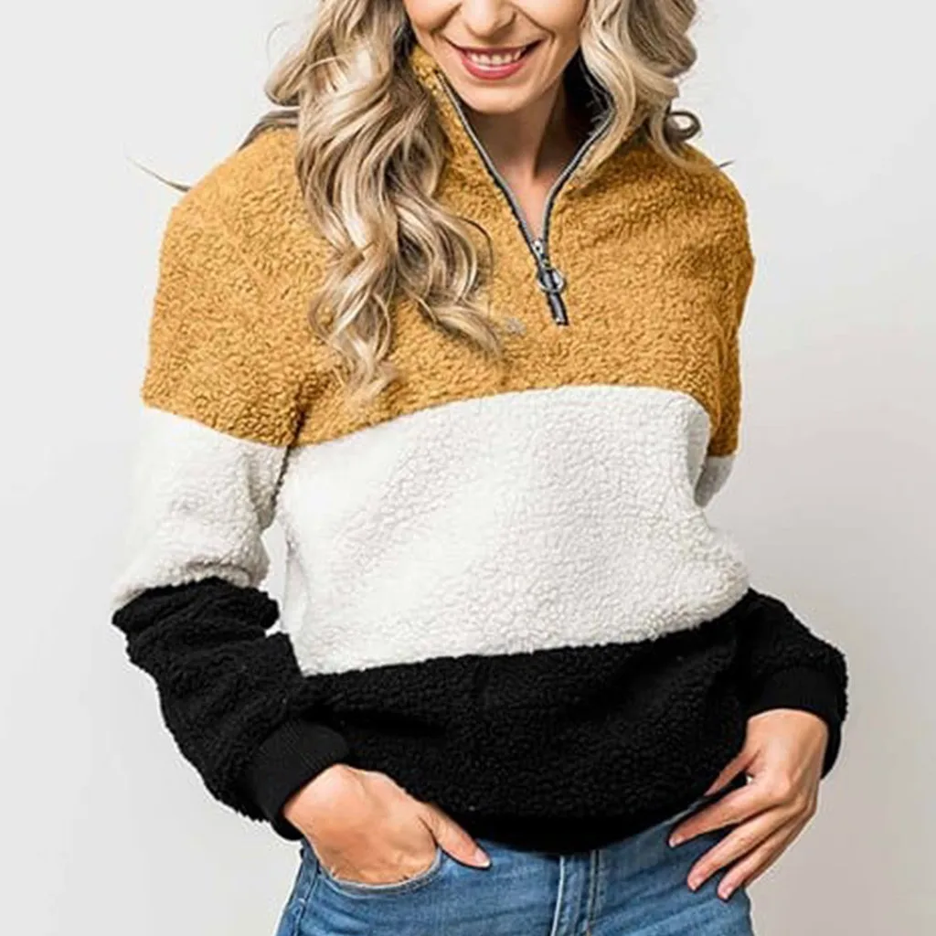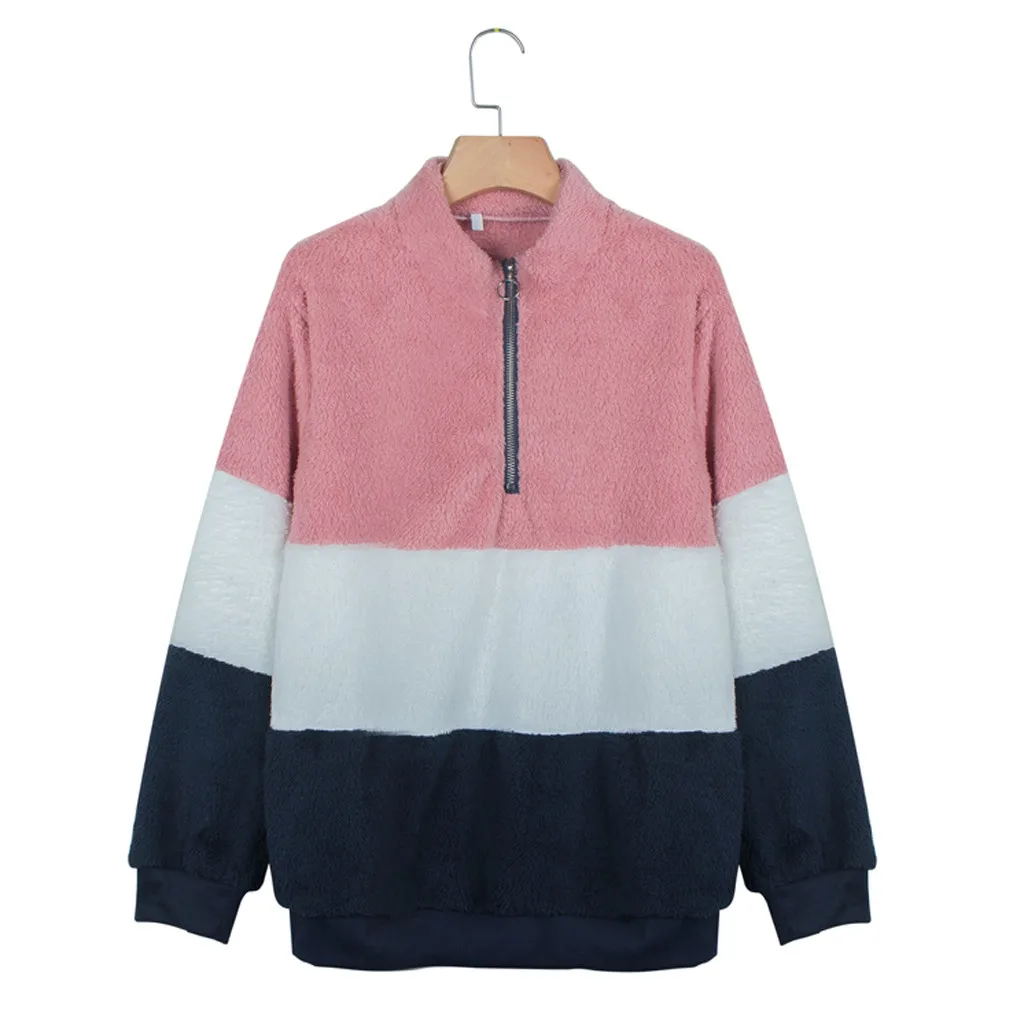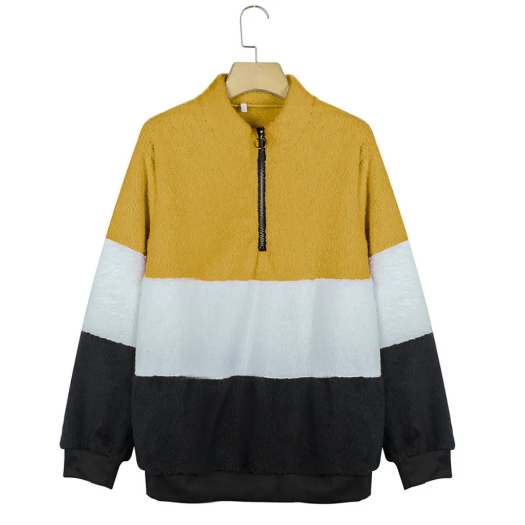 Женская Повседневная Лоскутная Толстовка с длинным рукавом на молнии Топ свитер блузка