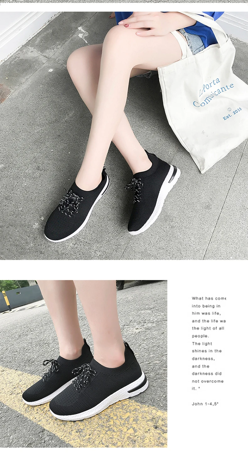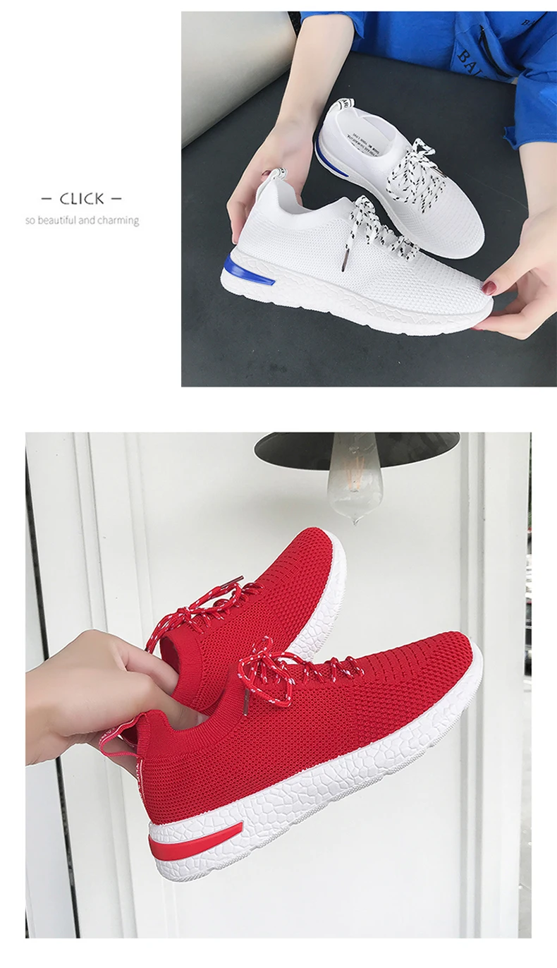 Women Sneakers White Flying woven mesh air cushion Tennis Shoes Breathable Female Sports Sneaker Air Cushion Woman Sport Shoes