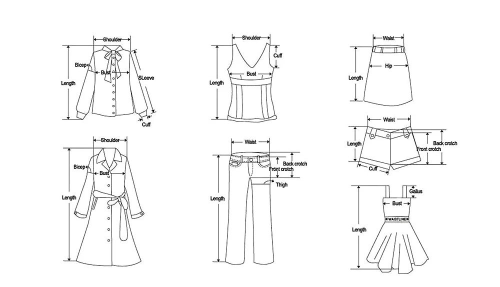 | Примечание: 1. Пожалуйста, строго следуйте таблице размеров, чтобы выбрать размер. Не выбирайте напрямую в соответствии с вашими привычками. 2. Все еще не уверены в размере? Мы хотели бы советовать, основываясь на ваших измерениях обхвата груди, талии и бедер. 3. Размер может отличаться на 2-3 см из-за ручного измеренияЗакупкам. Обратите внимание при измерении. 4. Предложение о ручной стирке в холодной воде. Это может помочь предметам сохранить свою форму. | ||||