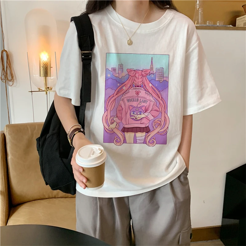 Harajuku футболка Готический укороченный топ Mujer с круглым вырезом укороченные топы kawaii одежда для женщин с принтом Корейская одежда винтажные футболки женская уличная рубашка blusas femininas de Verao 2019 Camiseta mujer poleras mujer de moda mujer 2019