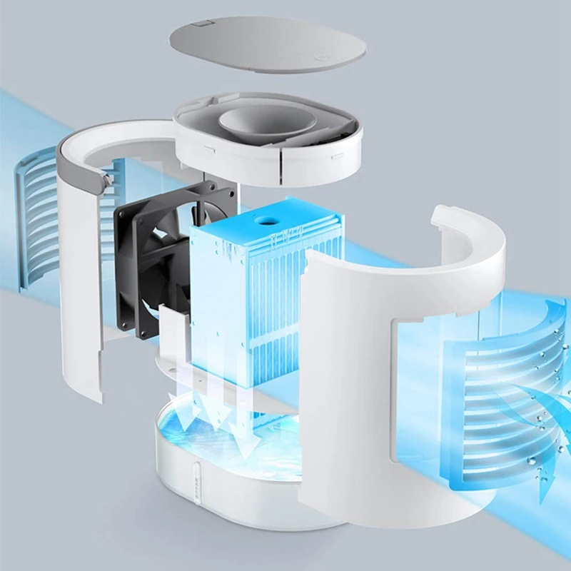 (Расширенное использование): доступная, портативная и эффективная альтернатива оборудованию для кондиционирования воздуха является эффективной альтернативой вентиляторам. Этот компактный воздухоохладитель идеально подходит для рабочих мест, общежития, офисов и многого другого. Вы можете взять его для кемпинга, путешествий