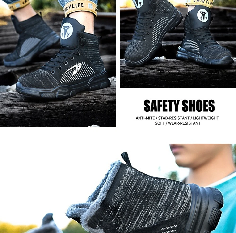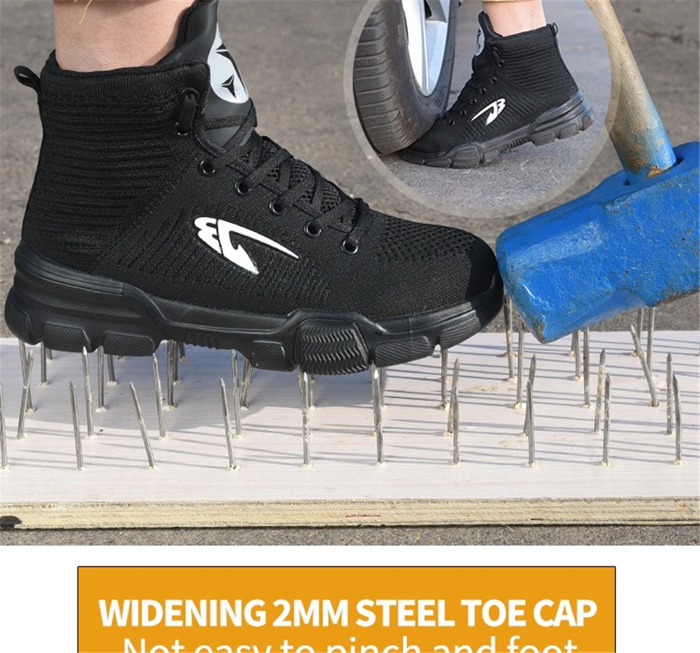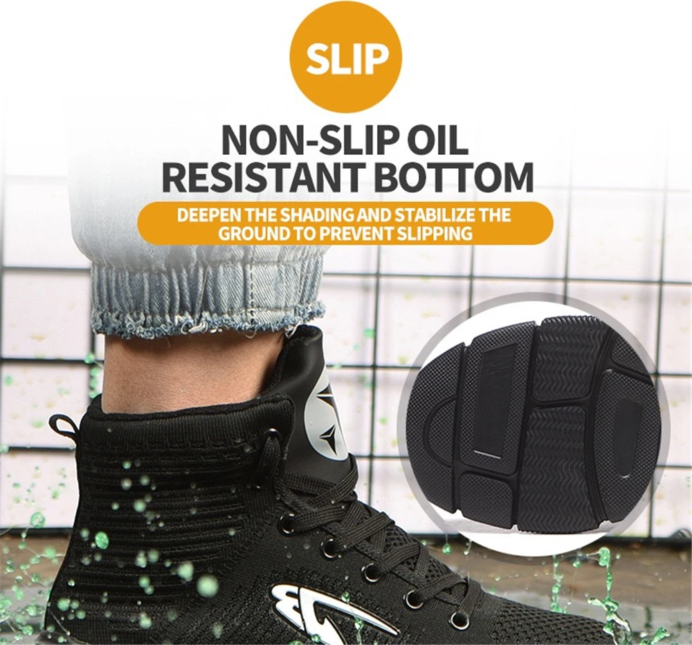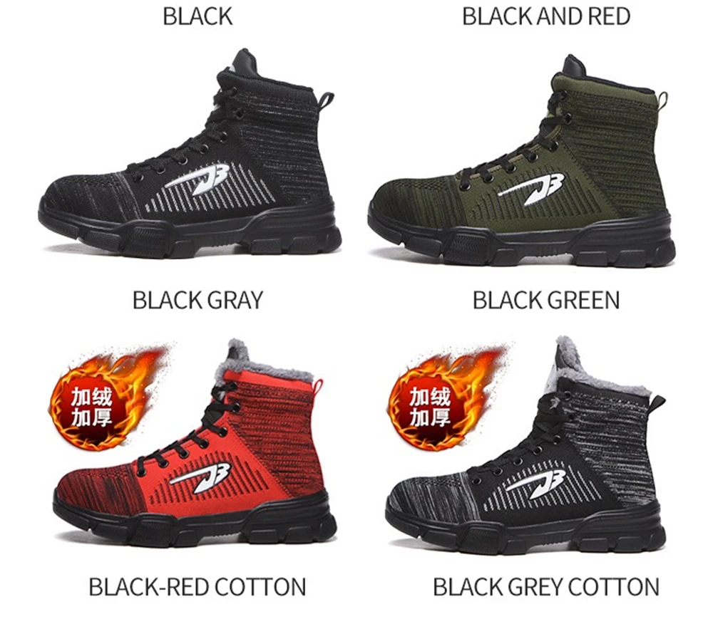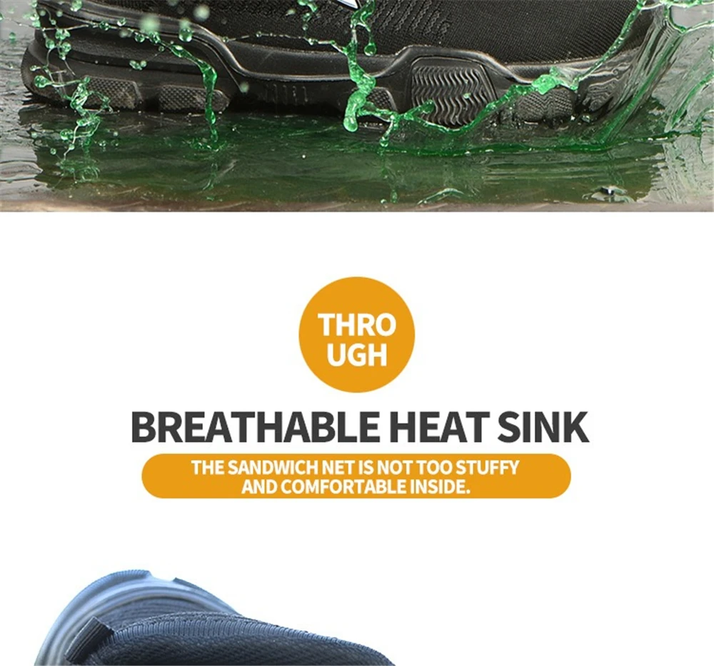 Внутренняя подкладка из дышащей сетки Высокое качество нейлоновые шнурки для обуви Вязаный вамп Противоударный стальной носок Износостойкая резиновая подошва Предотвращает проколы средней СТАЛЬНОЙ подошвы Дополнительные функции: Защита от ударов, проколов, маслостойкость, противоскользящая, морозостойкая, Антистатическая, устойчивость к высоким температурам, изоляция 6 кв. Размер подошвы обуви мм или см (250 мм = 25 см = 40)