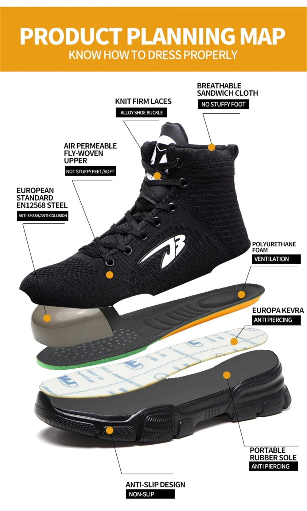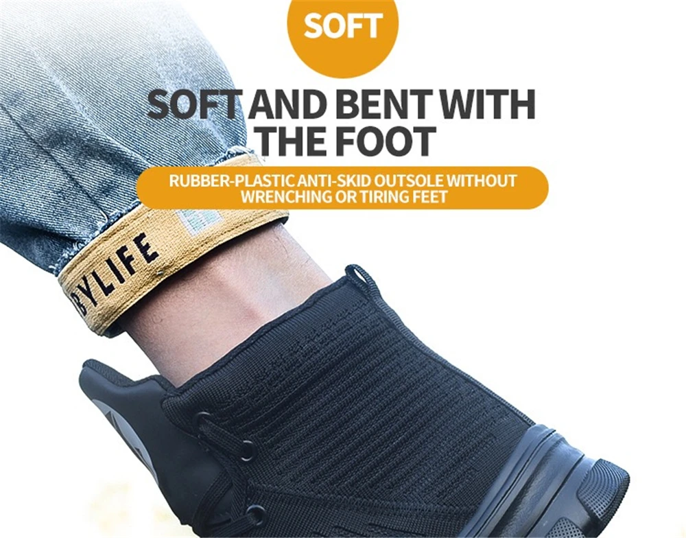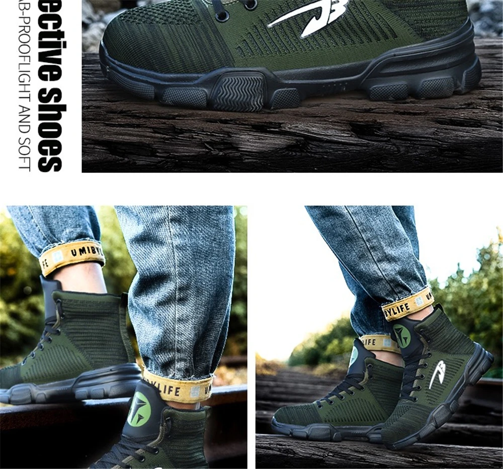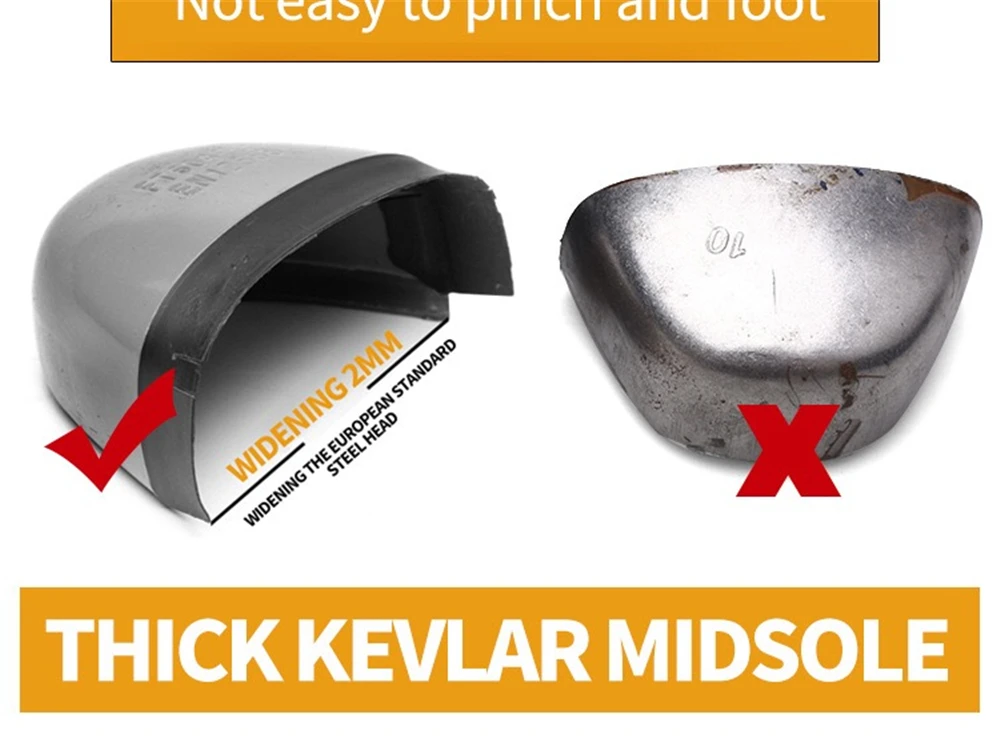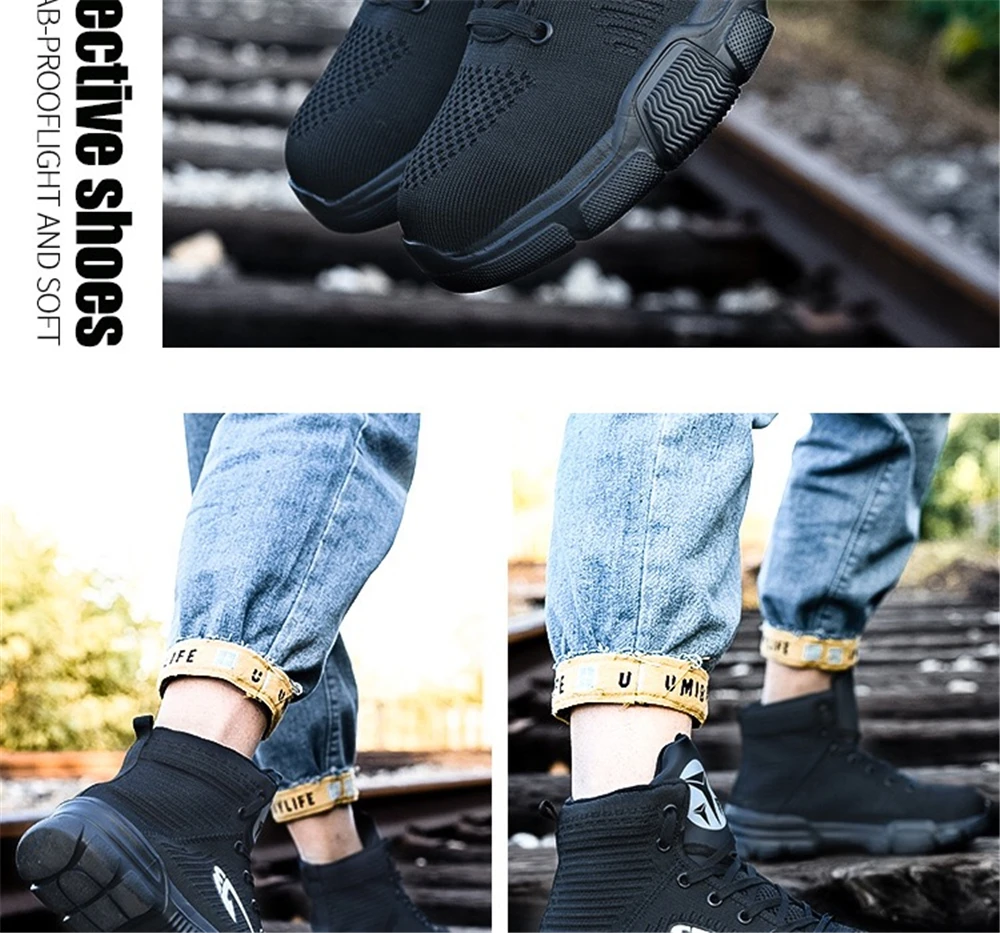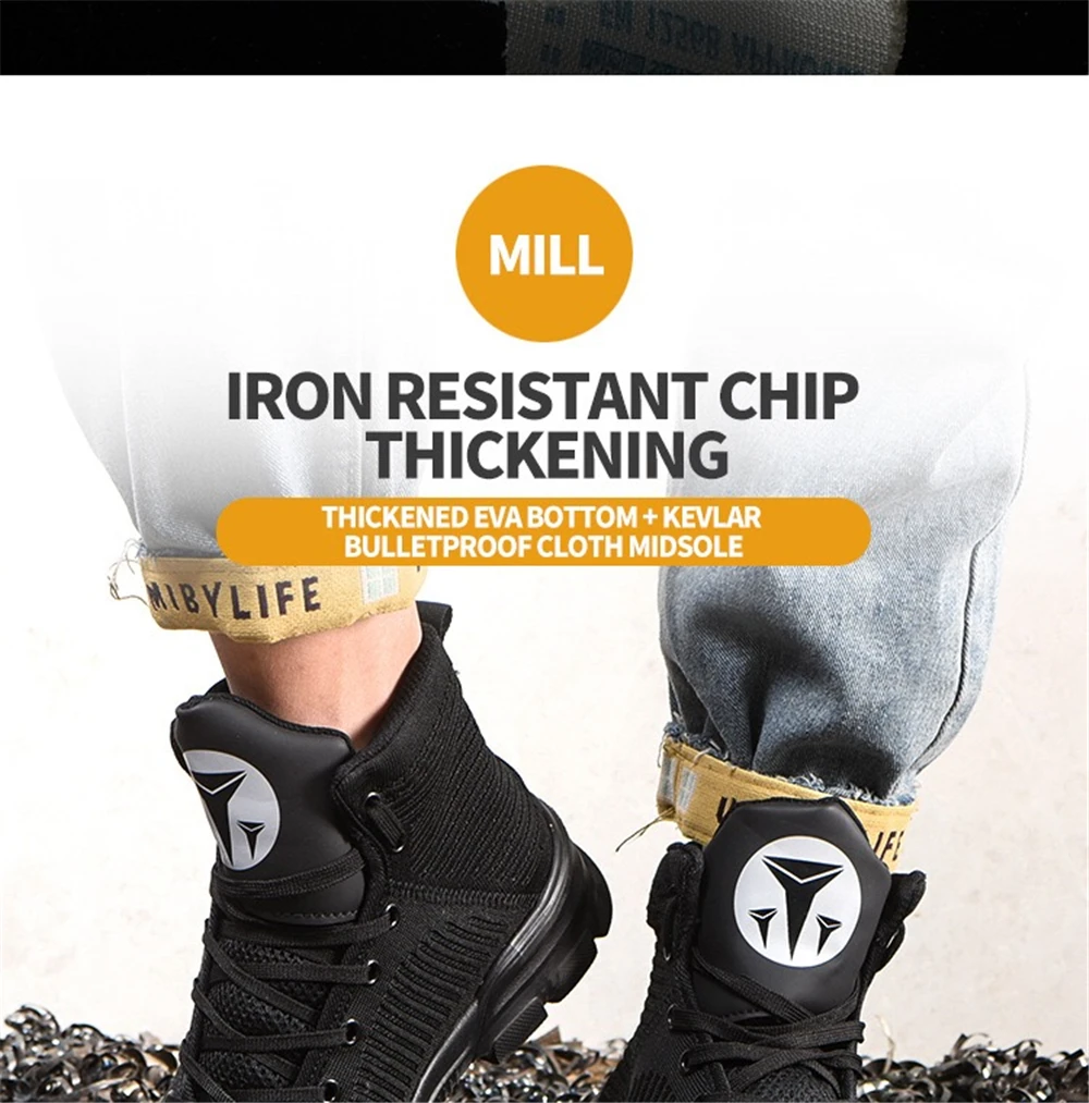 Внутренняя подкладка из дышащей сетки Высокое качество нейлоновые шнурки для обуви Вязаный вамп Противоударный стальной носок Износостойкая резиновая подошва Предотвращает проколы средней СТАЛЬНОЙ подошвы Дополнительные функции: Защита от ударов, проколов, маслостойкость, противоскользящая, морозостойкая, Антистатическая, устойчивость к высоким температурам, изоляция 6 кв. Размер подошвы обуви мм или см (250 мм = 25 см = 40)