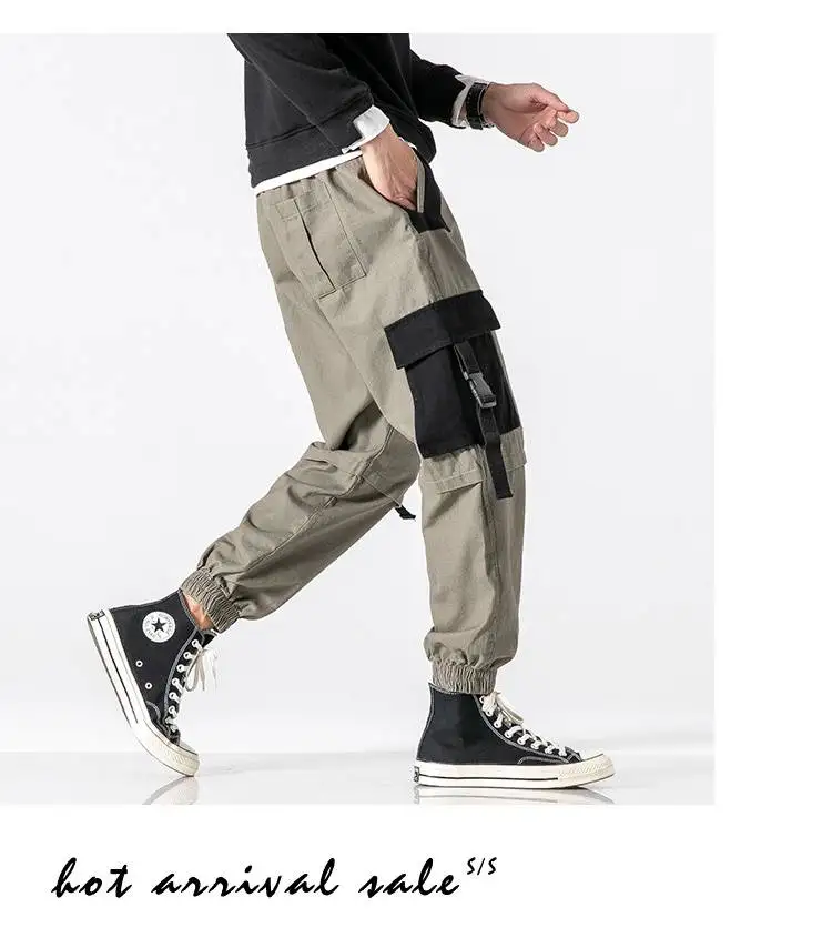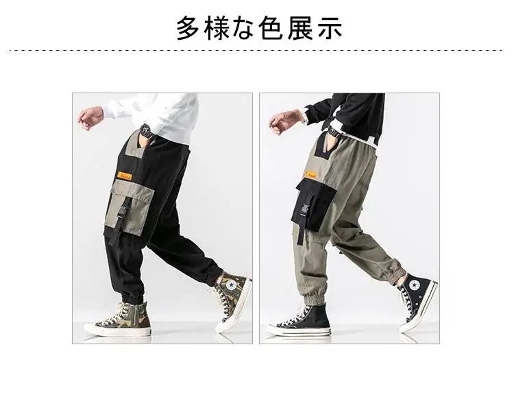 2019 ins, корейские весенние хип-хоп джоггеры, мужские черные шаровары, много карманов, с лентами, мужские спортивные штаны, уличная одежда, повседневные мужские штаны s