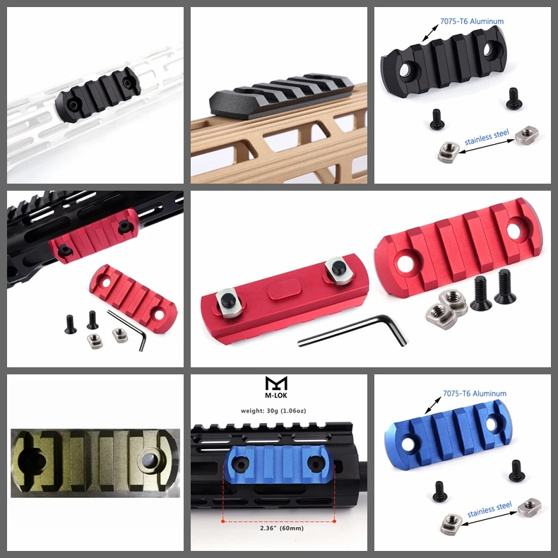 * Особенности Позволяет прикрепить к системам M-Lok. Простая быстрая настройка Минималистичный низкопрофильный дизайн уменьшает количество Сверхлегкая прочная алюминиевая конструкция Закругленные края * Посылка включает в себя: -1 x M-Lok рейку -1 х гаечный ключ -2 х Т-образная гайка и винт