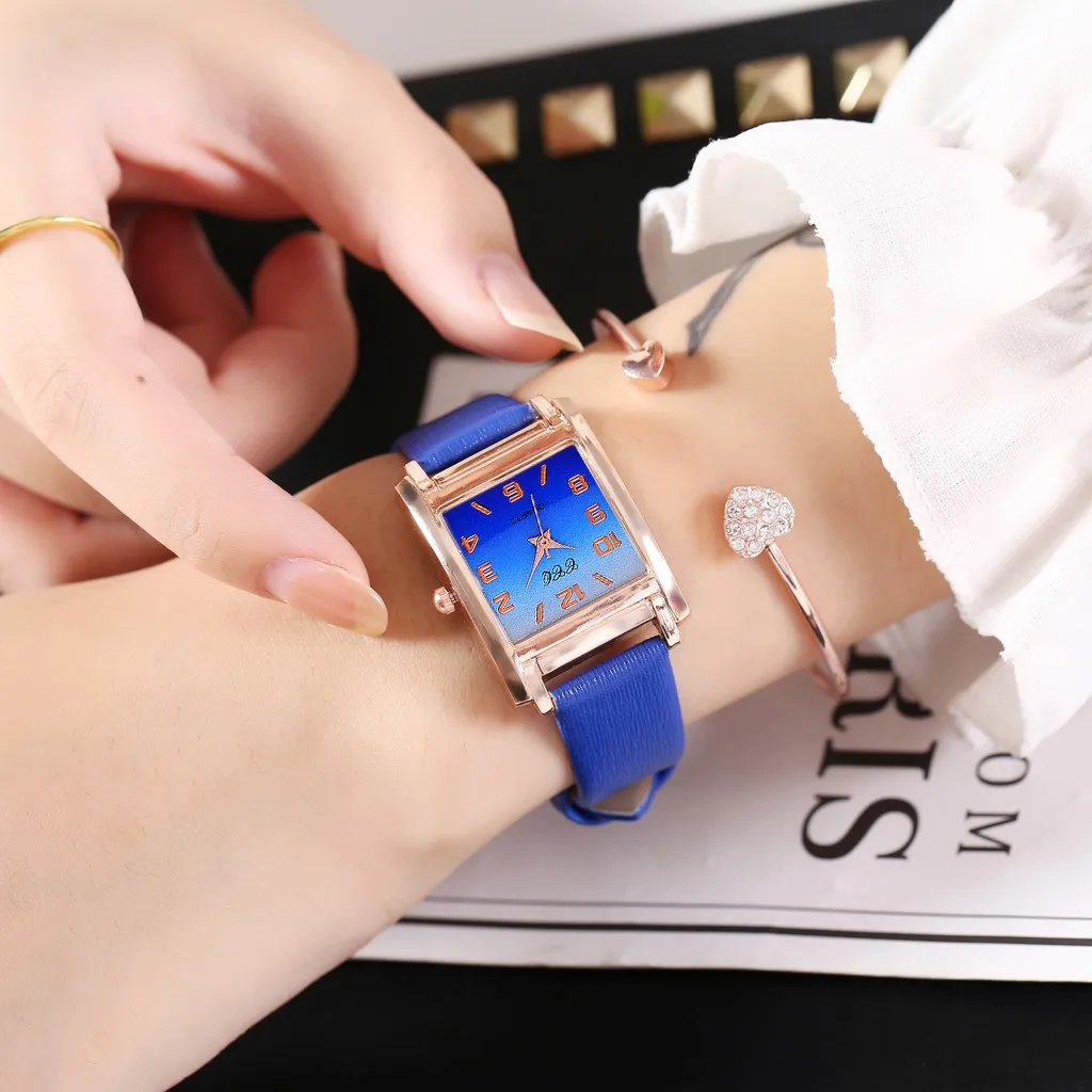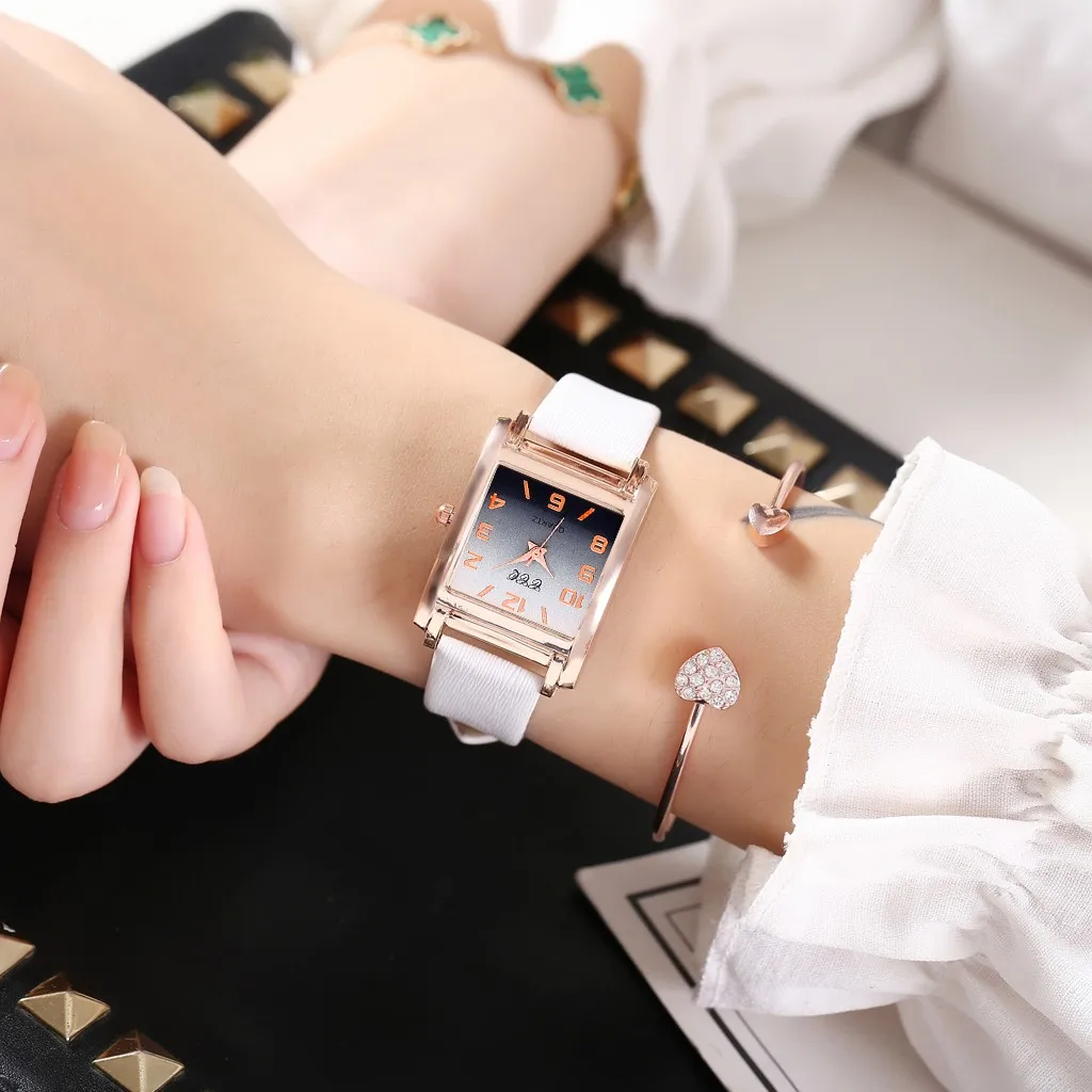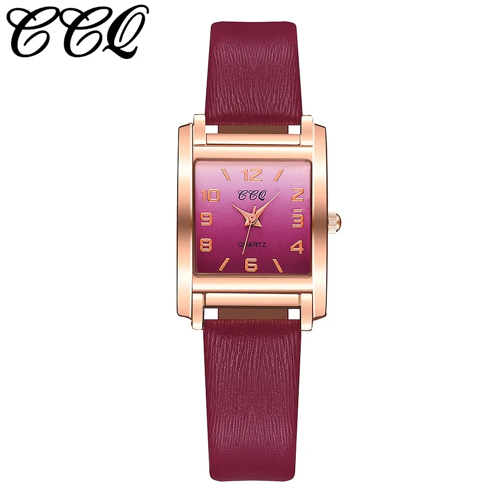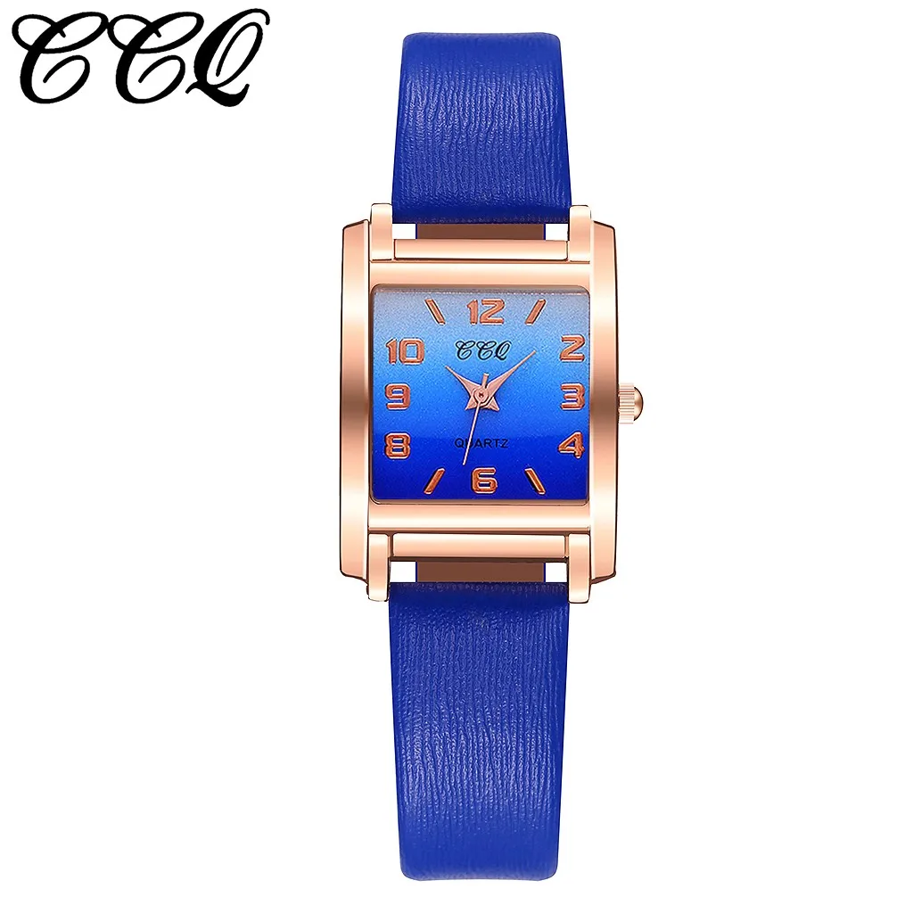 CCQ Гладкий минималистичный геометрический квадратный градиент матовые кожаные женские кварцевые часы