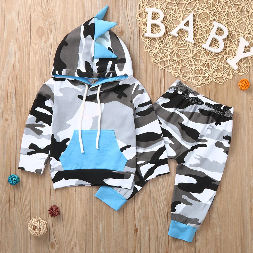 Комплект одежды для новорожденных мальчиков и девочек, камуфляжный комплект с капюшоном + длинные штаны, топы с капюшоном для малышей, комплект одежды для младенцев Одежда для маленьких мальчиков
