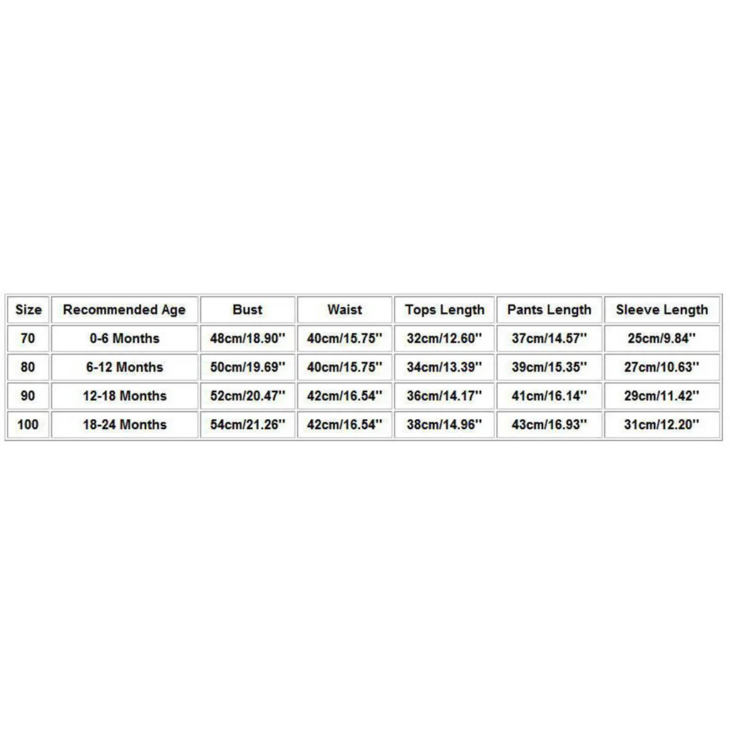 | Размер | Рекомендуемый возраст | Бюст | Талия | Длина топа | Длина брюк | Длина рукава |