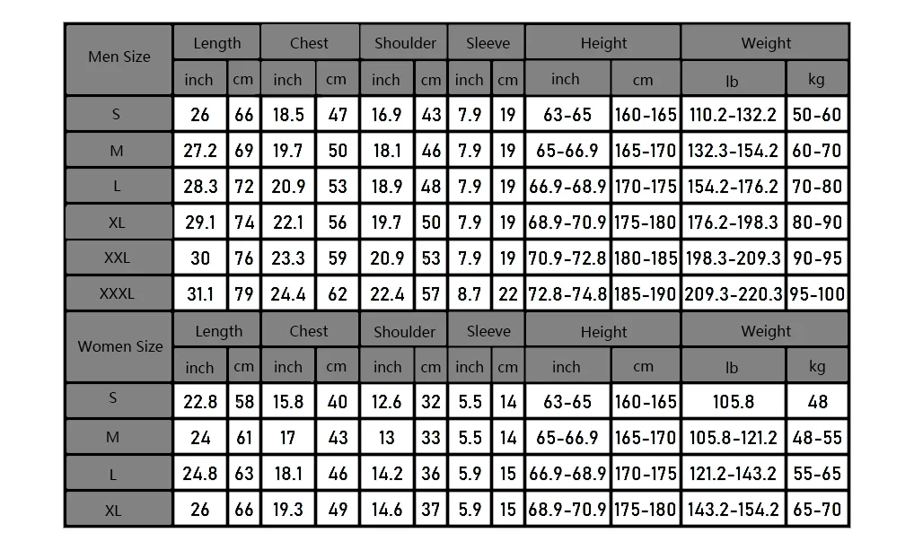 Пожалуйста, проверьте таблицу размеров перед размещением заказа!