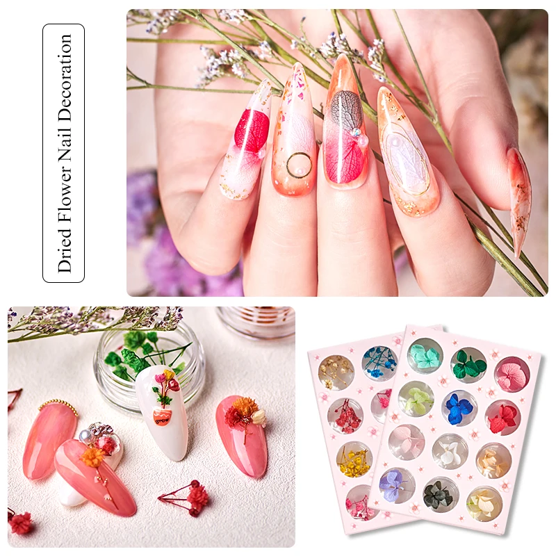 Микс сушеных цветов украшения для ногтей ювелирные изделия натуральные Цветочные наклейки в виде листьев 3D дизайн ногтей лак аксессуары для маникюра