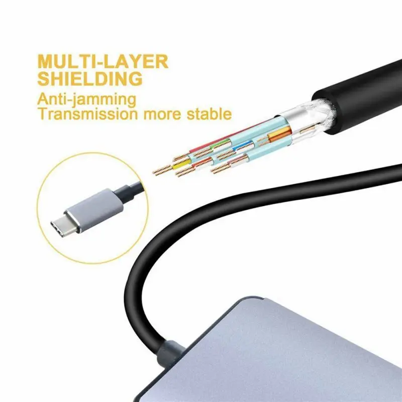 Feature: 1.4-in-1 Multifunction---This Type-C cable comes with a USB C female charging port, 2 USB 3.0 ports, and a 4k port for HDMI, which easily expands your USB C devices and fulfills your daily use. 2.High Resolution & Super Speed---It could extend a larger screen and reach to max resolution for HDMI 4K ( 3840x2160P)30Hz. The super speed reaches 5Gbps, which is fast enough to transfer your data 3.High-Technology---Constructed from high-grade aluminum alloy shell and milled with exact precision, this hub features faster heat dissipation. It is mainly designed for reading USB extra device/ the output for HDMI 4.Compact & Compatibility---This hub is designed for easy-to-use. Just plug and play. No additional installation or software is necessary. And it is suitable for all new MacBook, for DELL XPS15, for HP Spectre X360, for Chromebook, for Samsung Tablet, and for Huawei Matebook 5.Quality Design---It is small, compact, and wonderful for travel and the anesthetic accessory made of a durable aluminum frame Specification: Type:Dada Transfer Cable,Hub/Splitter Box Connector(s):Type-C,for HDMI Features:Portable Theme:Houses Packaged:Bag Packaged include: 1 x USB-C hub Note: Due to the screen difference, the color might be a little different from what you expect, please allow it