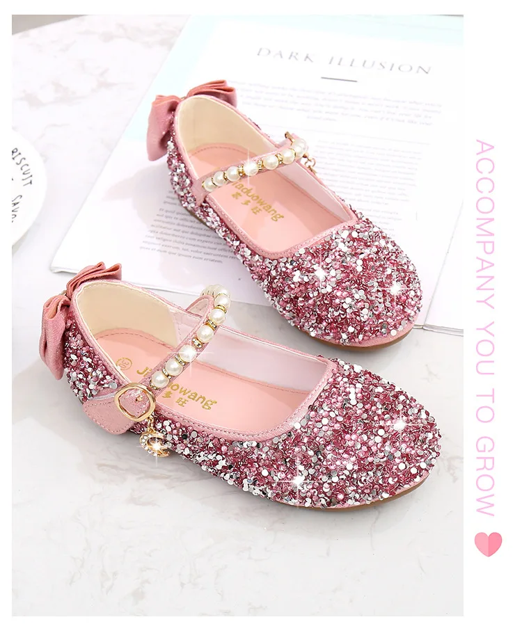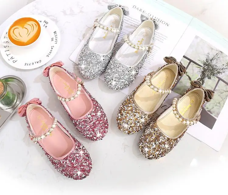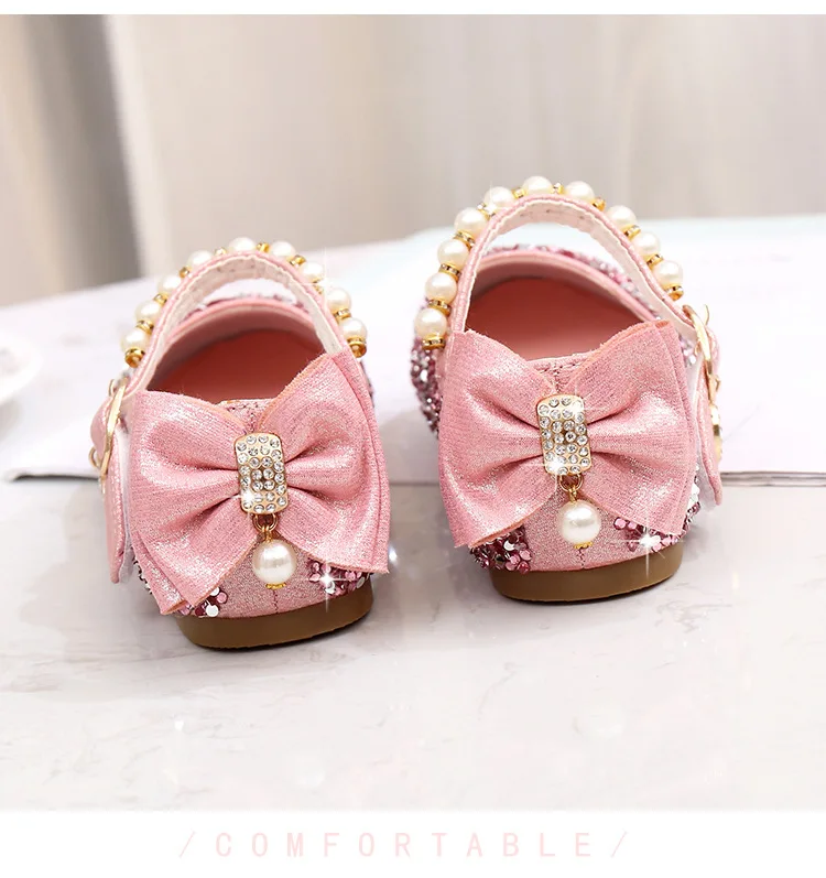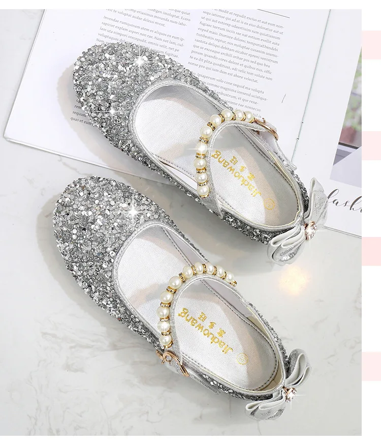 Кожаная обувь принцессы для девочек Обувь на высоком каблуке с бантом Вечерние