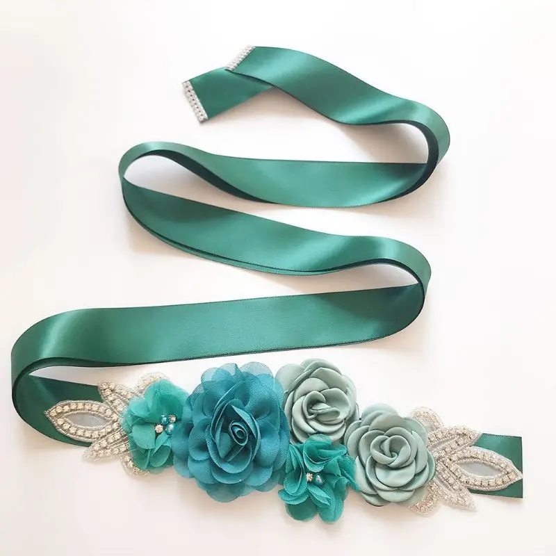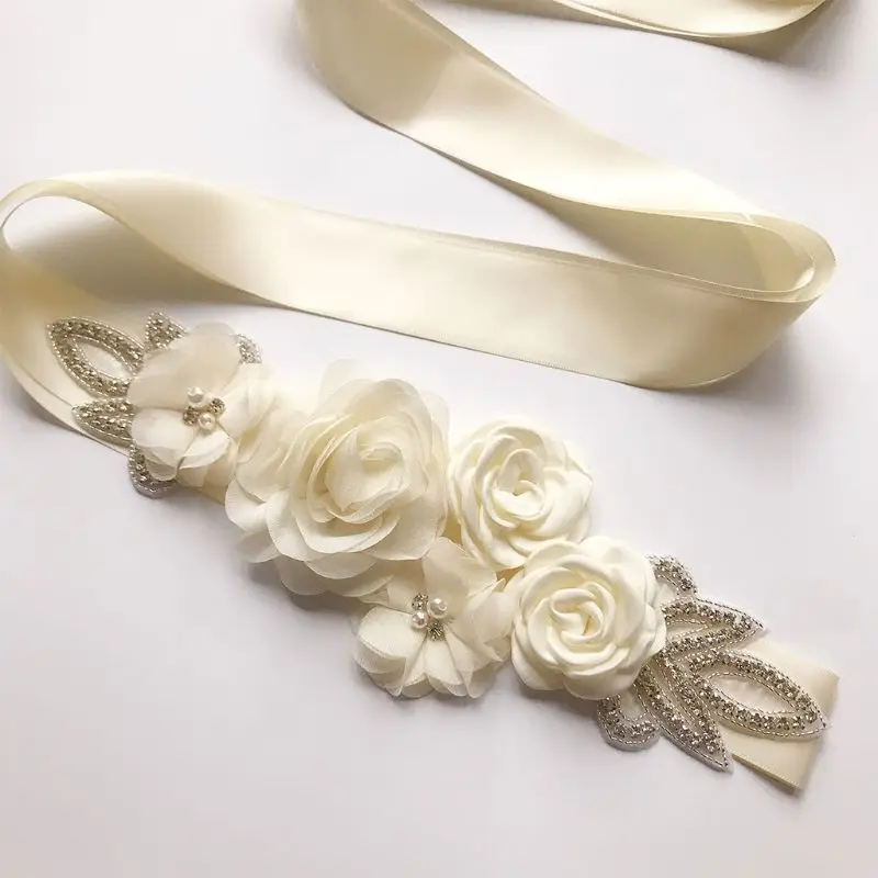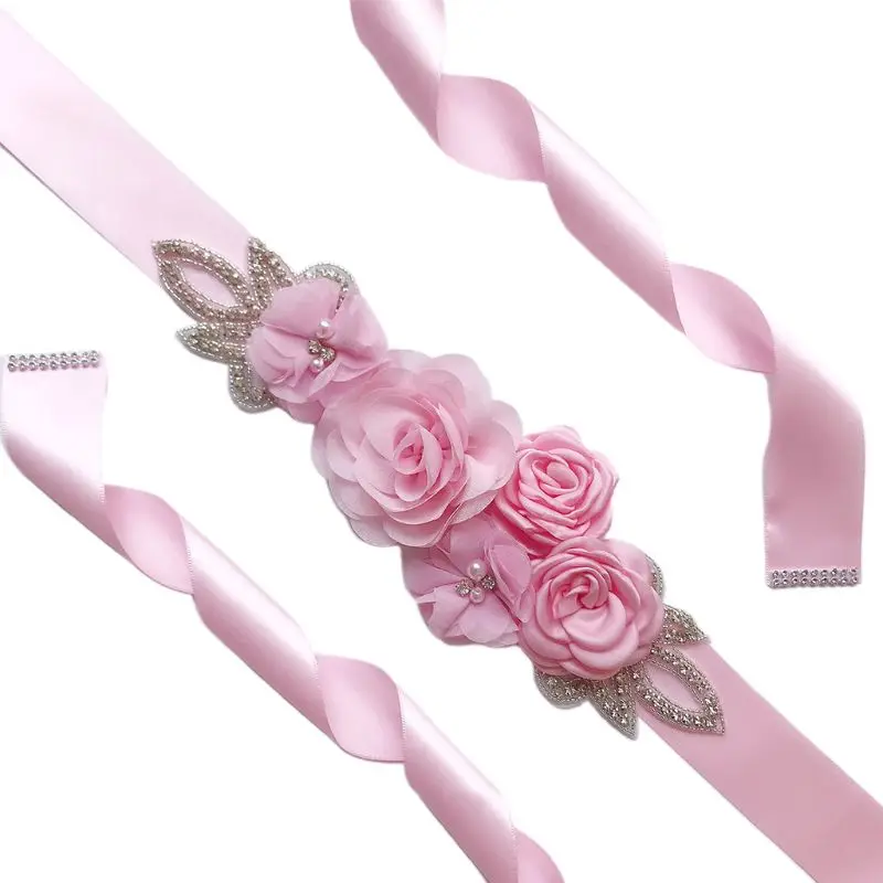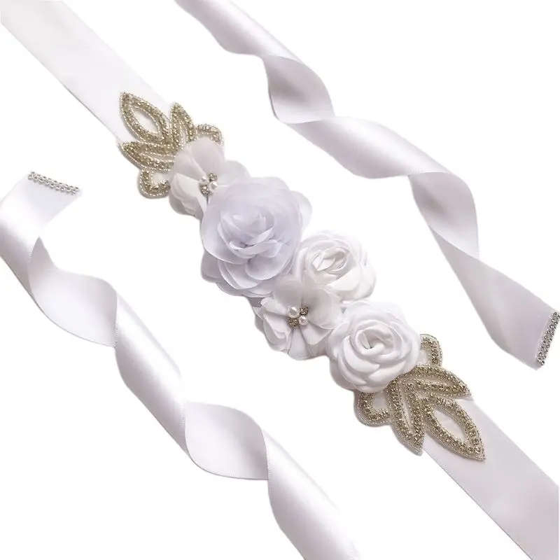 Изысканный женский пояс особенности мульти искусственные шифоновые розы цветы с шикарными имитация жемчуга и стразы и платье, расшитое бисером вручную дизайн.