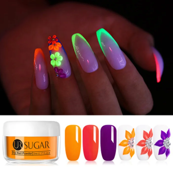 1. Dip порошок для ногтей легко сделать это с флуоресцентным эффектом.