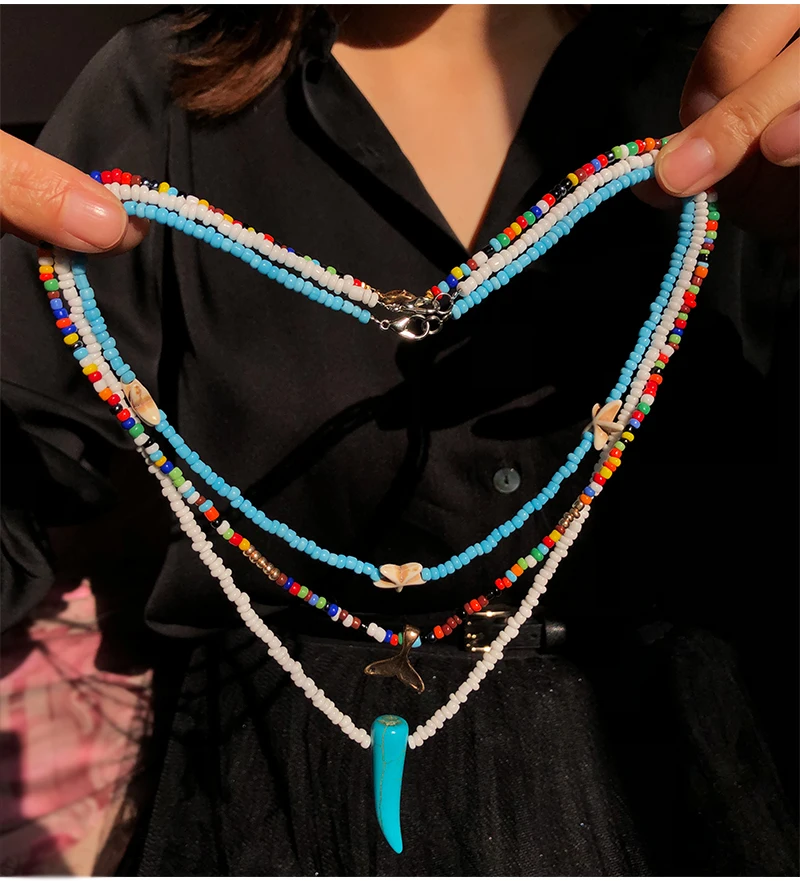У нас есть много дизайнерских ожерелий с бусинами разных цветов и размеров, которые Вы можете купить, цвет, который вам нравится, и носить вместе, что делает его более богемным или носить с вашим ожерельем золотого/серебряного цвета, также выглядит превосходным