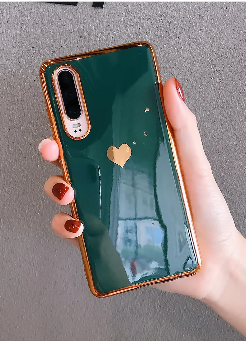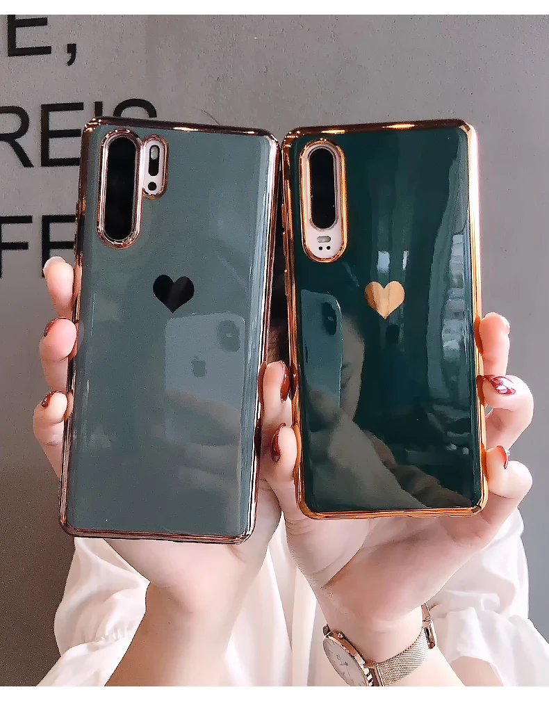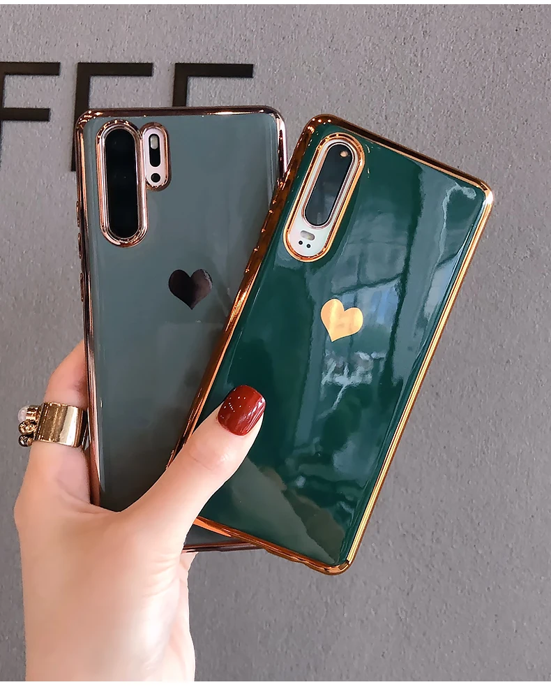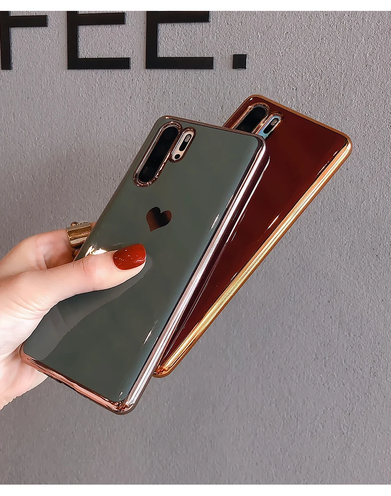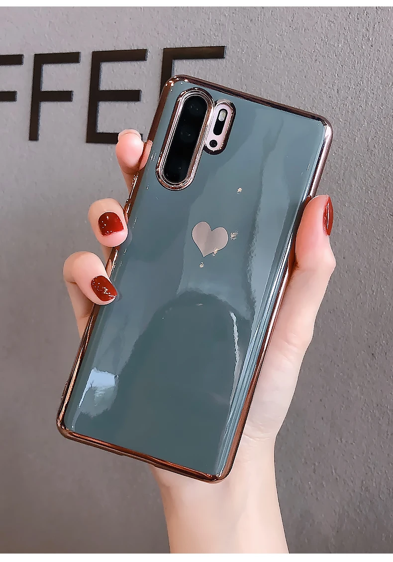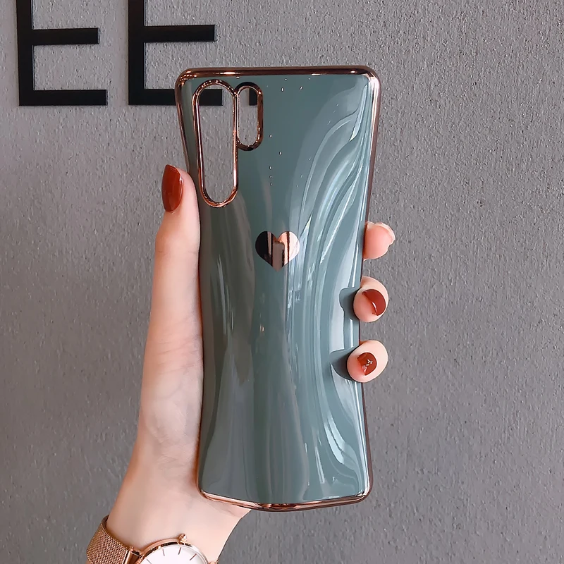 Роскошный чехол для телефона с сердечком для huawei P30 Pro mate 30 Nova 5 5i Honor 20 mate 20 Одноцветный зеркальный глянцевый гальванический