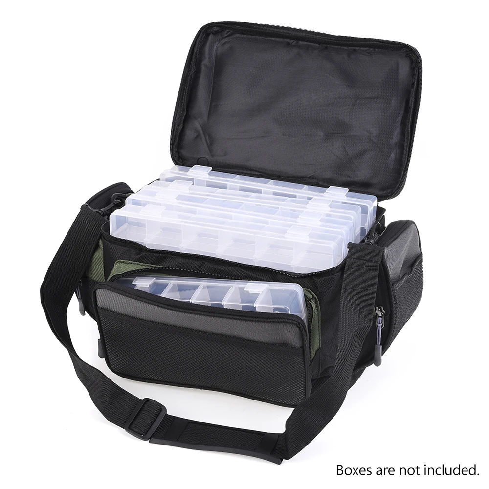 Эта сумка для рыбалки включает в себя вместительное основное отделение и несколько внешних карманов, достаточно вместительная, чтобы держать ваши рыболовные снасти организованными и готовыми к любой рыбалке. Двойная застежка-молния позволяет легко и быстро достучаться до ваших вещей. Он идеально подходит для хранения рыболовных приманок, катушки, плоскогубцев, коробок для снастей и других аксессуаров.