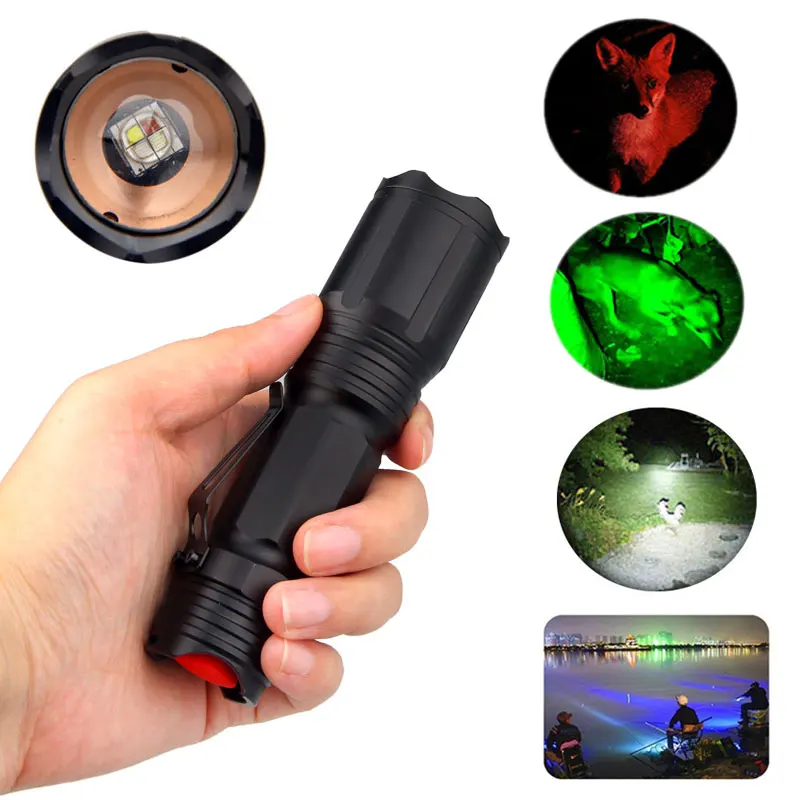 Изготовлен из высокого качества алюминиевый сплав. Этот фонарик достаточно прочный и прочный для длительного повседневного использования. Сконструированный Противоскользящий вкатывающийся фонарик обеспечивает плотное крепление Супер яркий и lastest XML-Цвет светодиодный, высокая производительность, высокая эффективность и энергосбережение Совместим с 3 батареями xAAA или 1 литий-ионной батареей 18650 (аккумуляторы в комплект не входят), и дает Часы использования Тактический фонарь с регулируемым фокусом, 4 цвета в 1, светодиодный. Для удовлетворения ваших потребностей в различных условиях, таких как поиск, рыбалка, бег, охота, походы и т. д. Вспышка светильник оснащен 4 разных светильник ing режимы: светодиодный яркий белый светильник, синего цвета, рыболовные светильник, зеленый светильник, красный светильник. Переключатель Tailcap кнопка для передачи режим, удобный inerface для того, чтобы регулировать выходную Параметры: Материал: алюминиевый сплав Мощность: 10 Вт Форма источника: светодиодный светильник Цвет: черный Размер: 129*35 мм Максимальный диапазон: 100-200 метров Телескопическая Фокусировка: Да