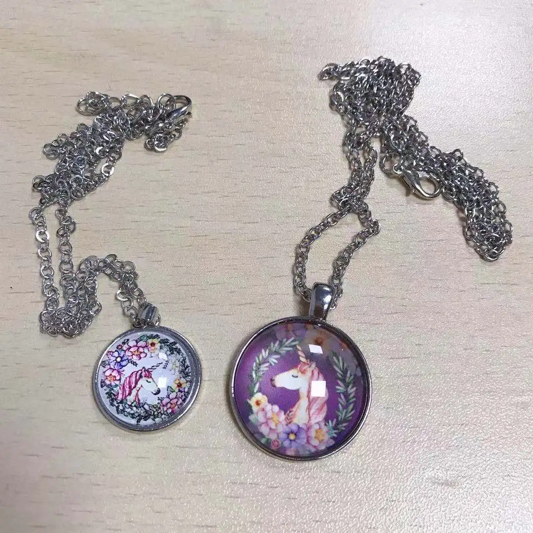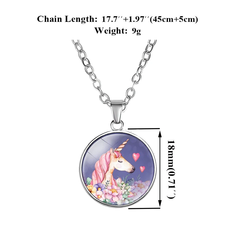 Ожерелье с единорогами амулет в виде единорога, стеклянная цепь из кабошона ожерелья с буквой для женщин и девочек, подарок для влюбленных Единорогов