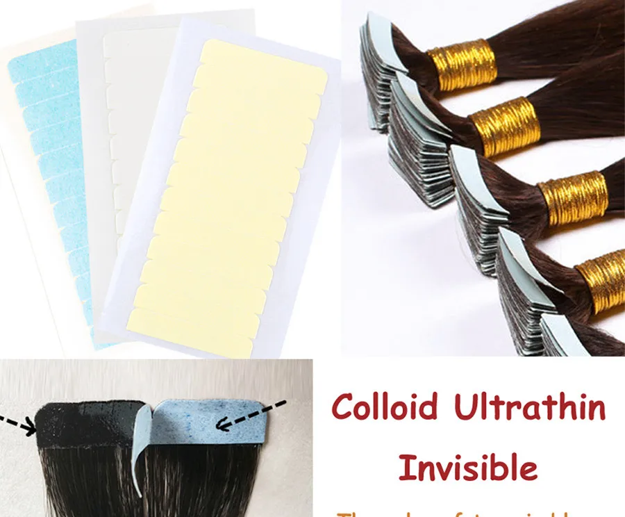 Характеристики: Эти удлинительные Ленточные вкладки липкие и могут хорошо скрываться с расширением волос, также они останутся в месте и отлично подходят для использования в качестве новых или замены