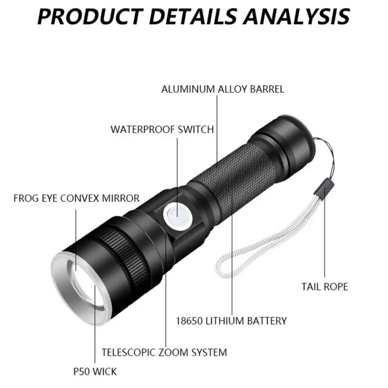 P50 фитиль с четырехъядерным бликовым фитилем, высокая яркость для удовлетворения ваших потребностей в освещении.