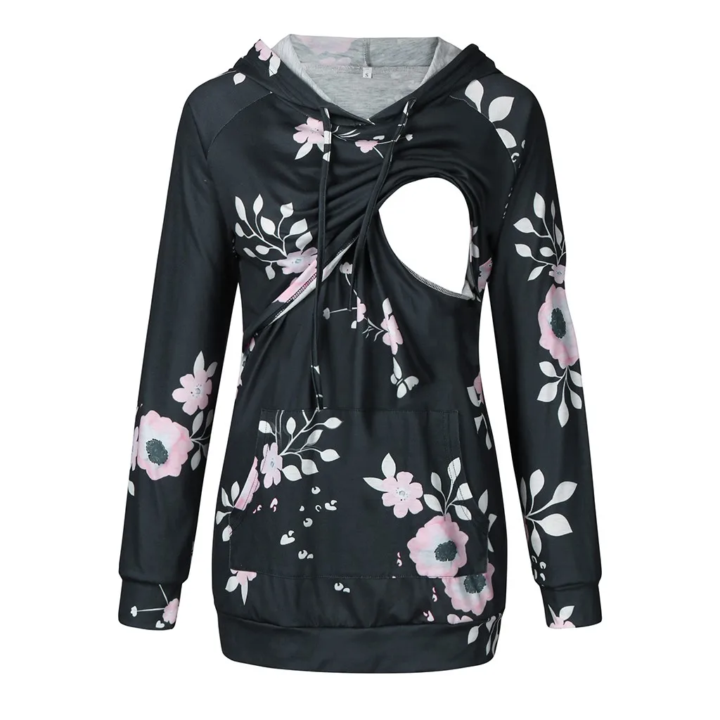 Женская толстовка для беременных с длинным рукавом и цветочным принтом для кормления грудью