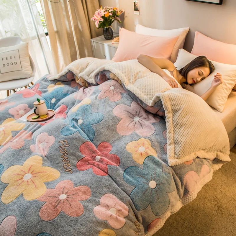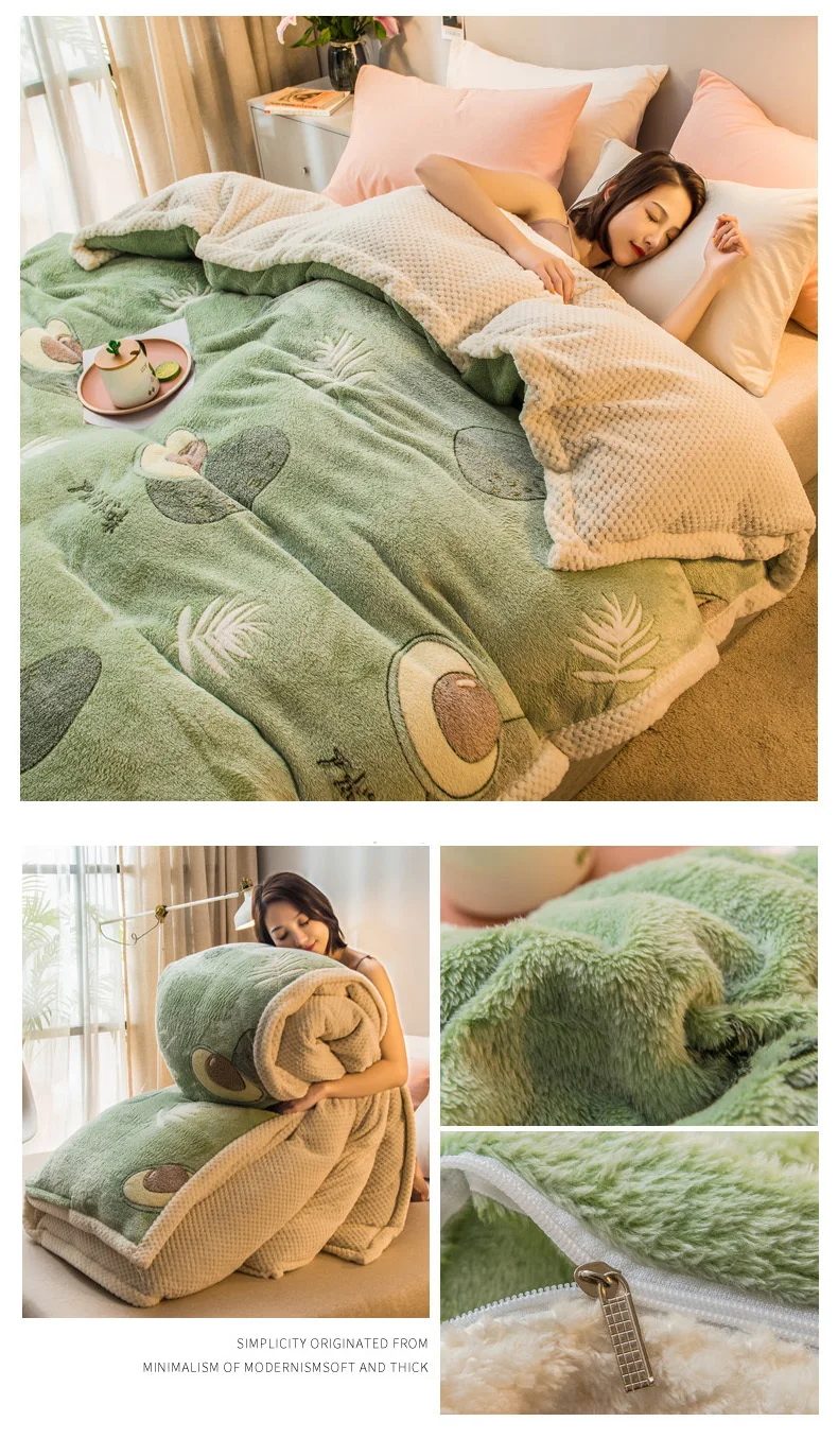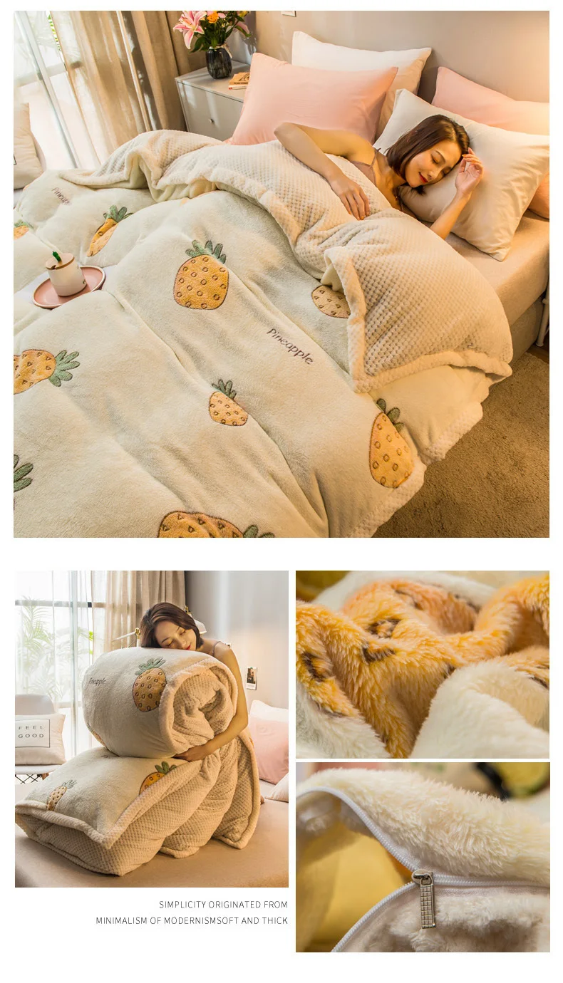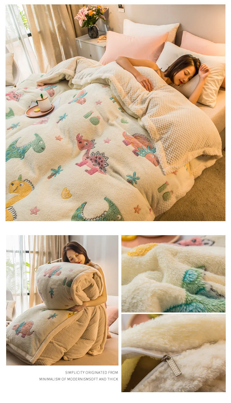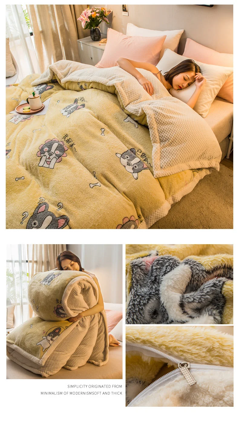 Cartoon Printing Dual-use Blanket Zipper Design Home Duvet Cover Bed Quilt Cover Soft Cozy Velvet Double-sided Blanket
