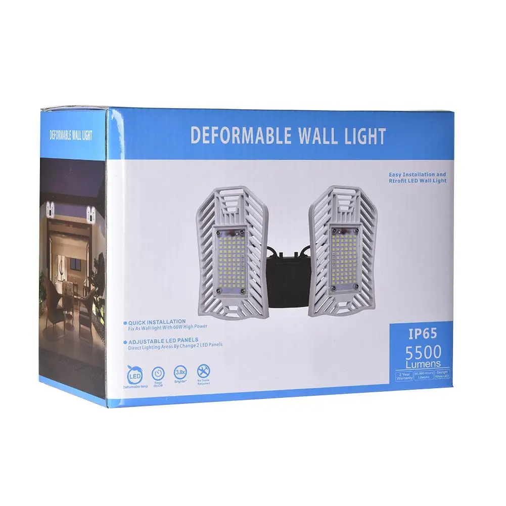 1、【Superior Deformable LED Wall Light】LED Wall Light with 2 adjustable wings and blinding 6000 lumens, the updated 55W super bright garage lighting will be your new favorite go-to light! Use the Wall Light to direct this powerful light array exactly where you need it,making it an excellent hands-free light.Say goodbye to dim! 1x LED Garage Light with plug